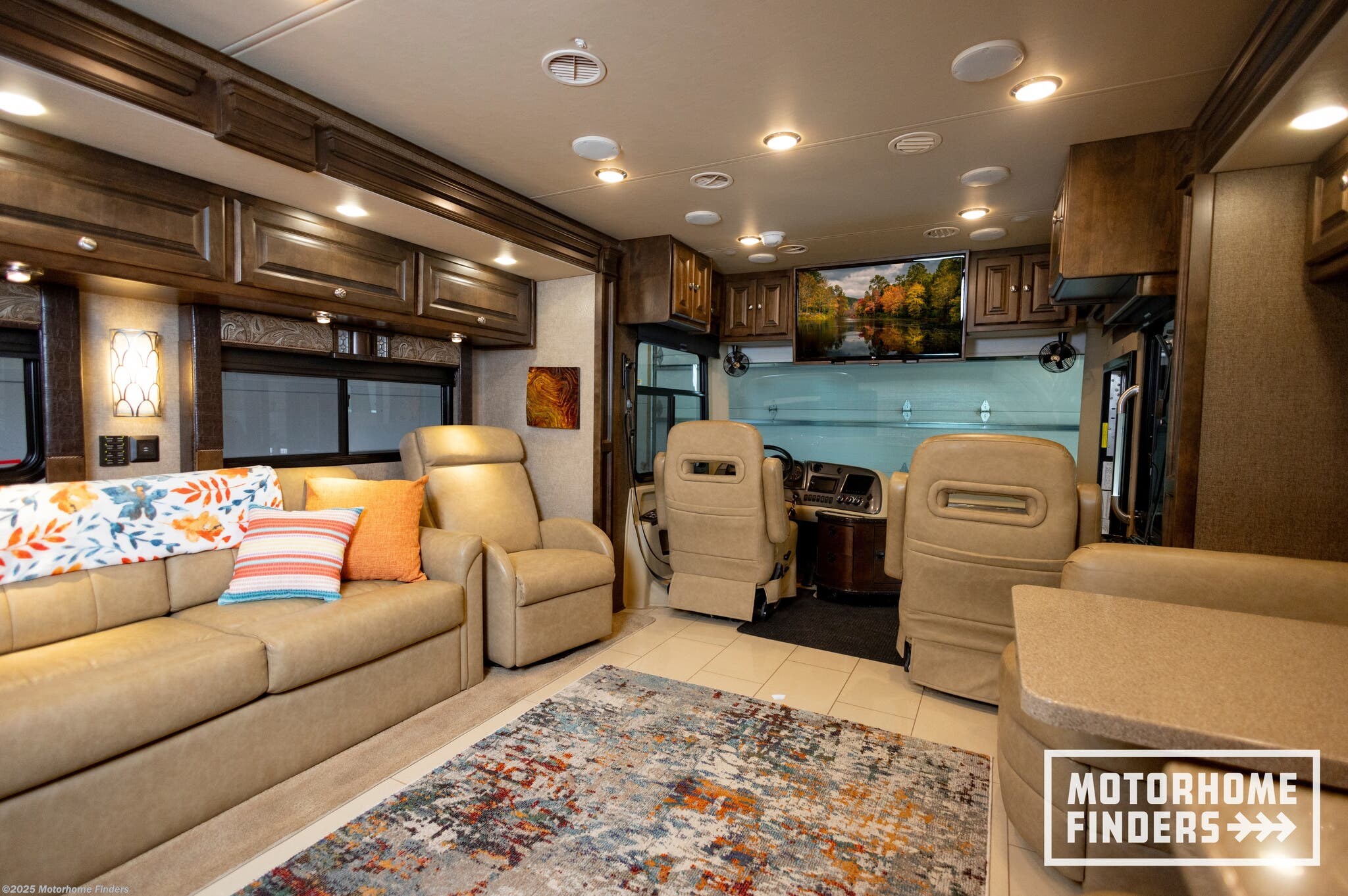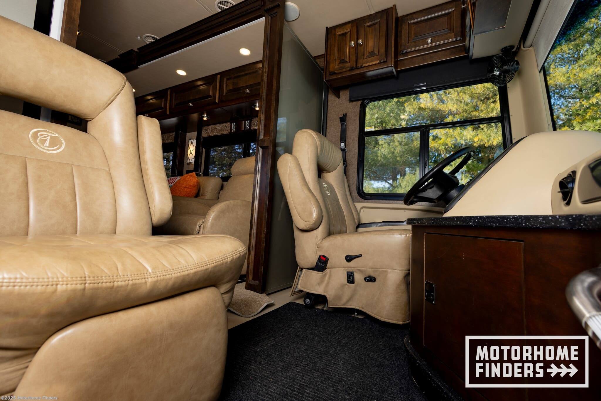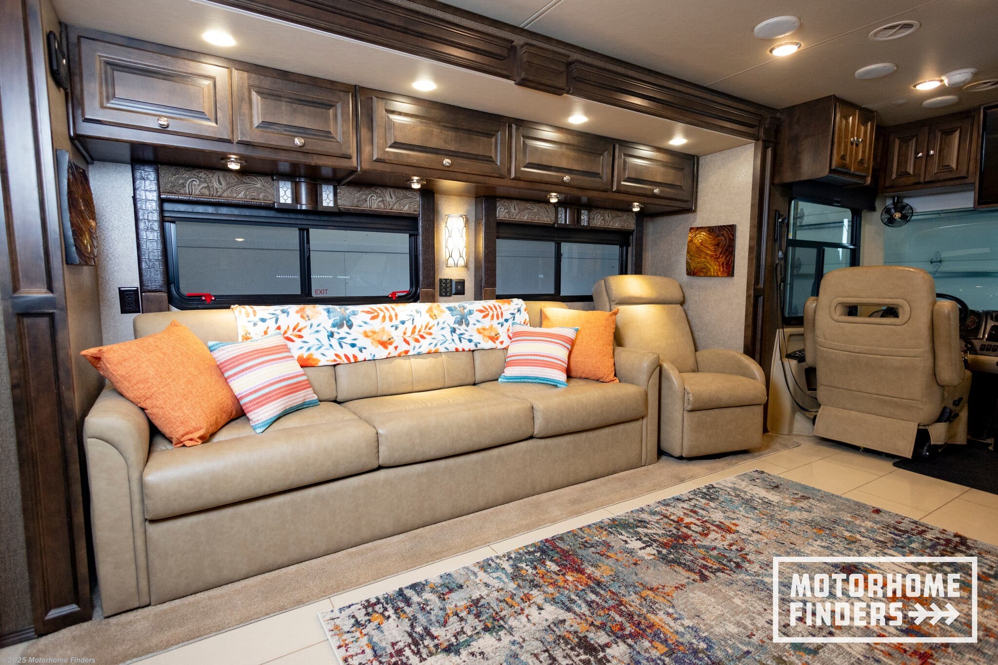 Power Leatherette Captain’s Chairs – Designed for long-haul comfort with a power footrest for the passenger.