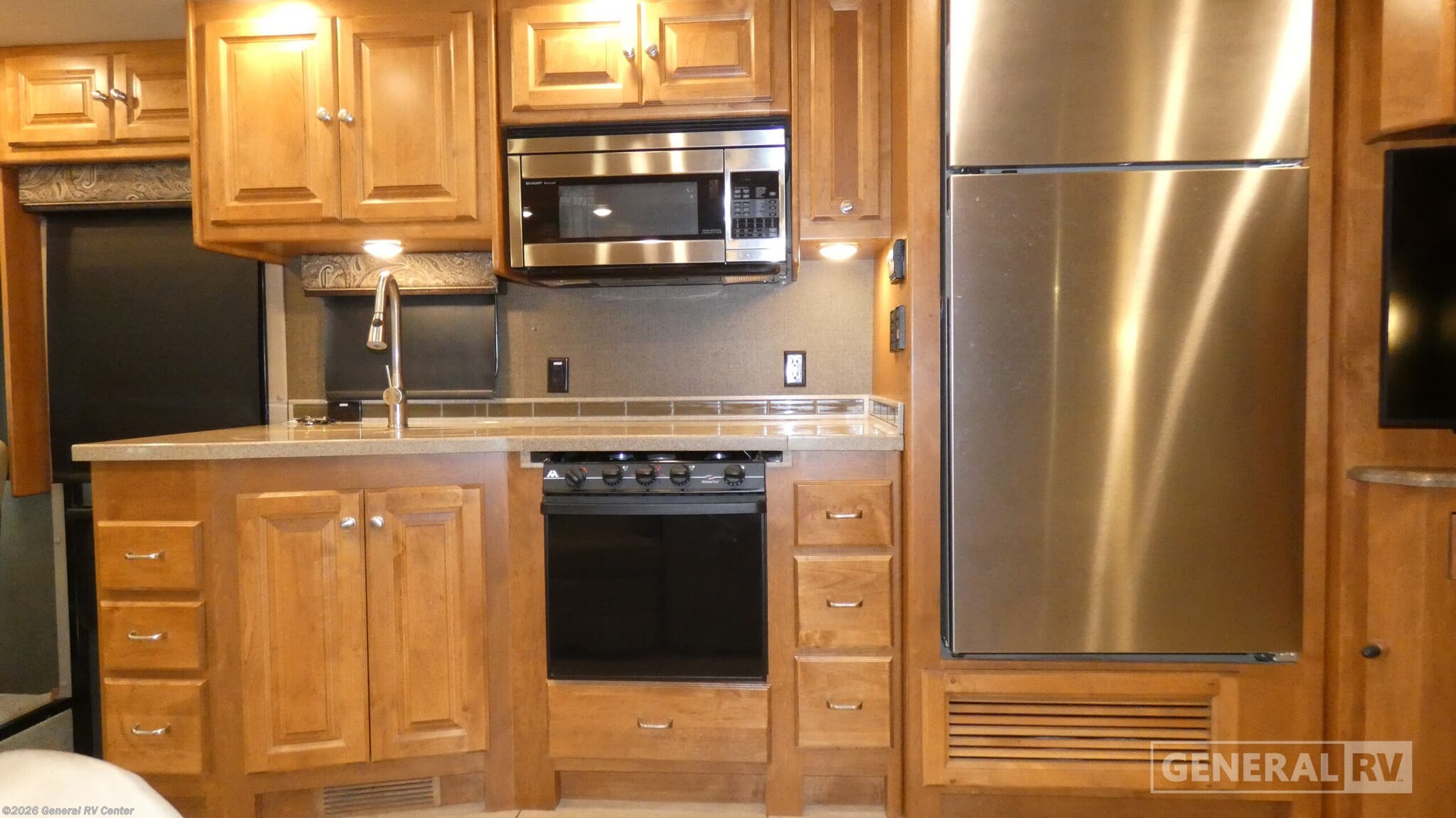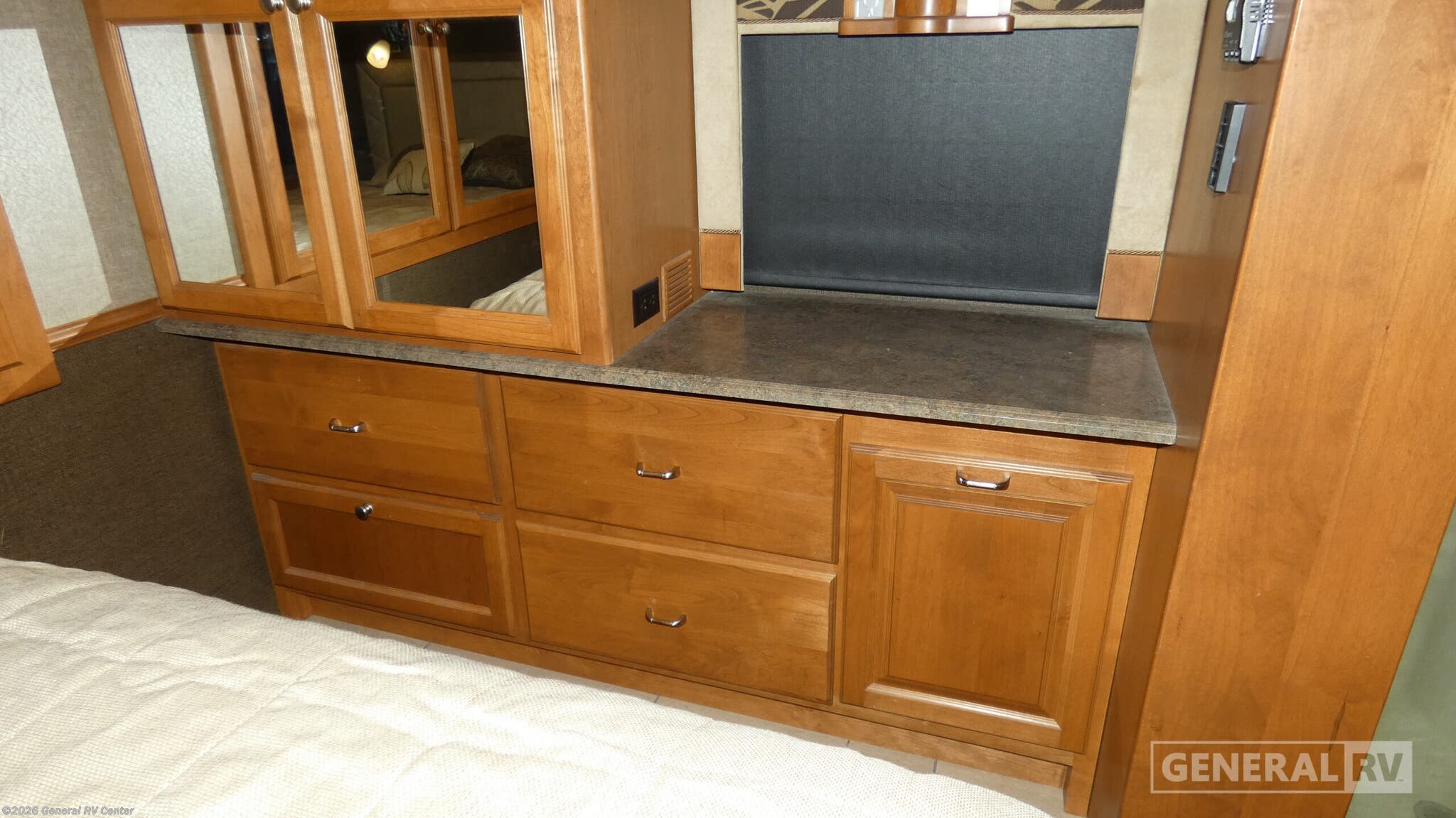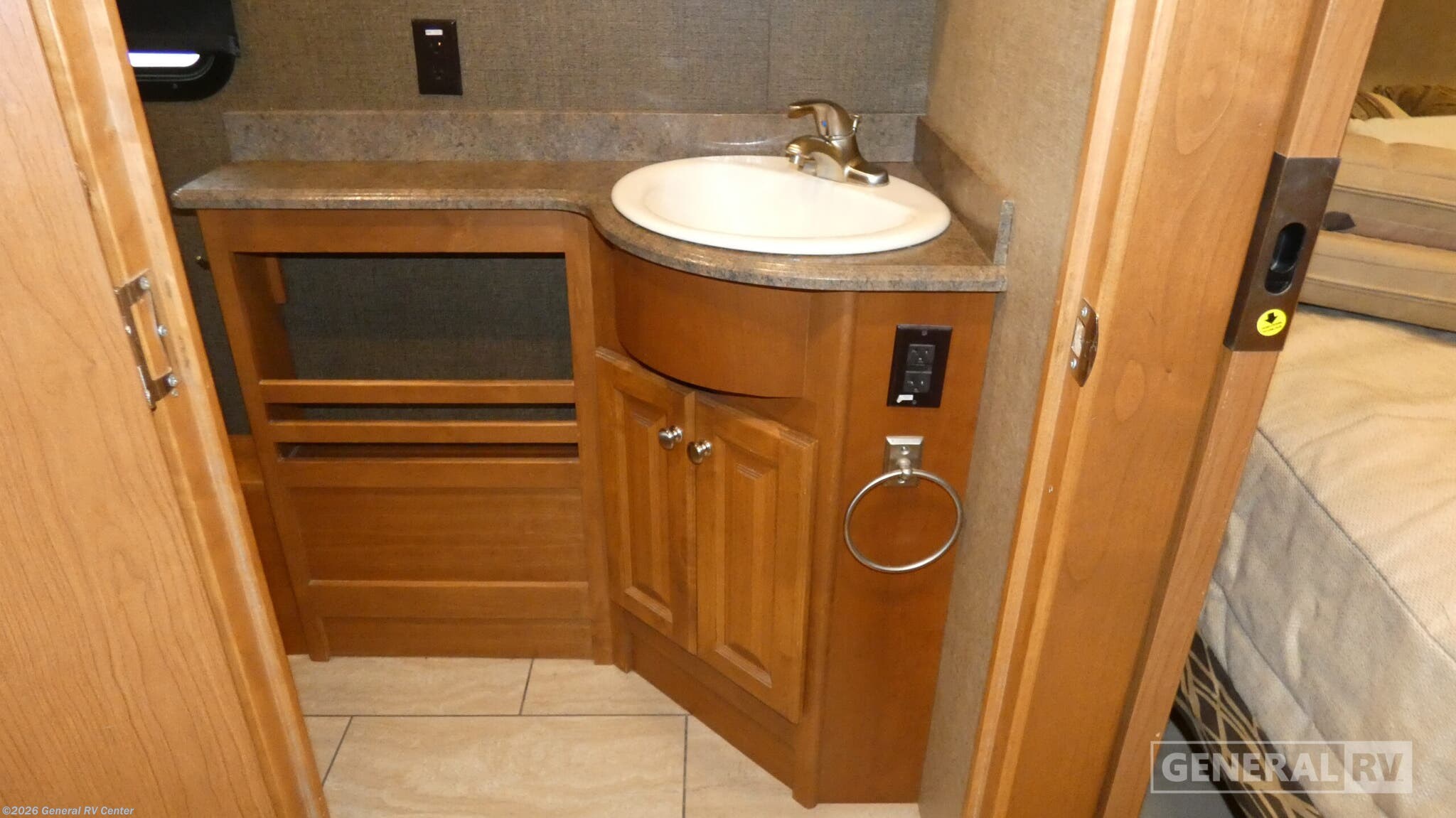 Tiffin Motorhomes offers this Allegro 31 SA class A motorhome with double slide outs, a spacious living area, and a comfortable rear bedroom. As you enter the coach, the front includes two captain's chairs, overhead cabinets at each side, and a TV at the center front. The living/dining slide out has a booth dinette and a sofa bed as well as overhead cabinets. You may choose to add the following options, a dinette with a computer workstation or a L-shaped chaise sofa bed. A TV is mounted on the opposite wall for easy viewing. Below the TV there is an optional fireplace. The kitchen runs along the curb side and includes overhead cabinets, an angled double sink, overhead microwave, three burner range, refrigerator and pantry. A split bath includes a private area with a toilet, overhead cabinet, and large vanity with sink. A shower is across the hall. The rear bedroom has a slide out with a queen bed that has nightstands at each side and overhead cabinets above. The rear wall of the coach features a large storage area, while the wall opposite the bed features a wardrobe with drawers below, and a vanity with a TV above it, and more!