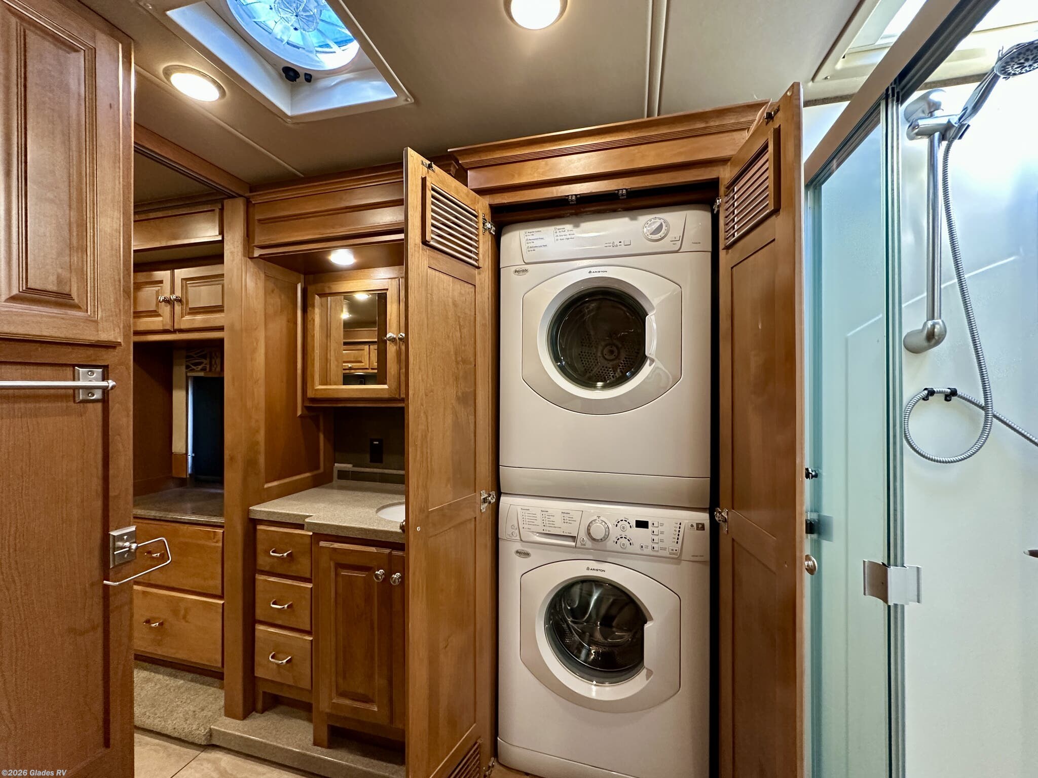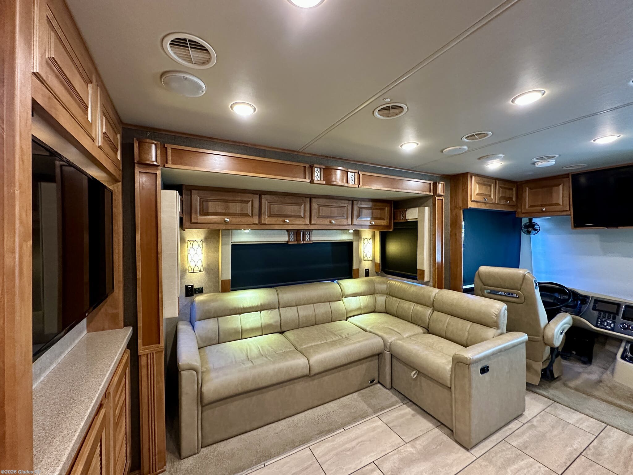 AUTO LEVELING, POWER AWNING, SLIDE TOPPERS, OUTSIDE TV, CENTRAL VACUUM, STACKED WASHER & DRYER, RESIDENTIAL REFRIGERATOR, DAY & NIGHT SHADES, KING BED AND MUCH MORE...