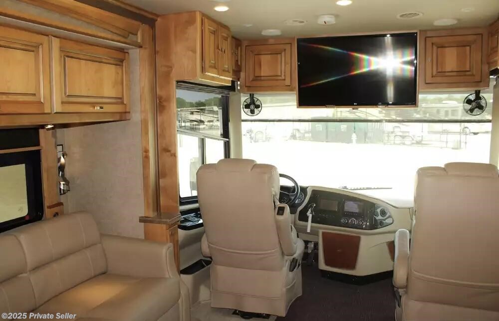 Electronics include back-up and side cameras, in-dash GPS navigation system, AM /FM radio with SiriusXM radio streaming. Entertainment system sports three (3) interior LG brand televisions (wide screen pop-up in living room) and one (1) external LG unit, and surround sound system. Equipped with Wineguard in-motion satellite system and dvd player