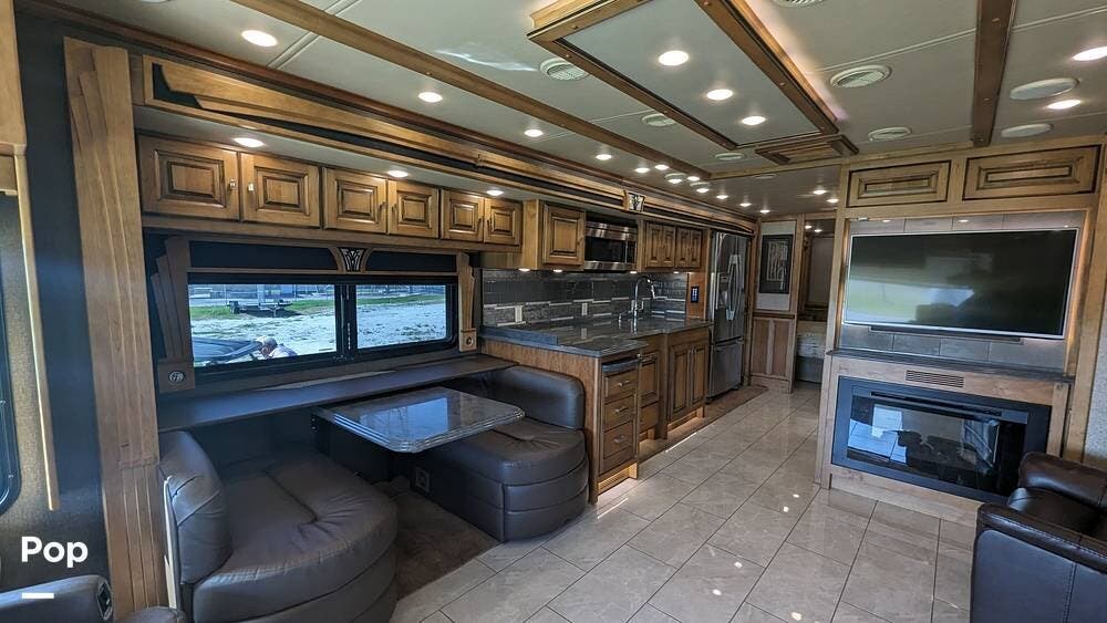 This Phaeton 40 AH coach has a perfect living area for relaxation and entertainment. It features plush seating to unwind comfortably, while ample space allows for socializing with family and friends. Whether enjoying a movie night or hosting guests, this spacious interior provides the ideal setting for full-time living or traveling the country in luxury!