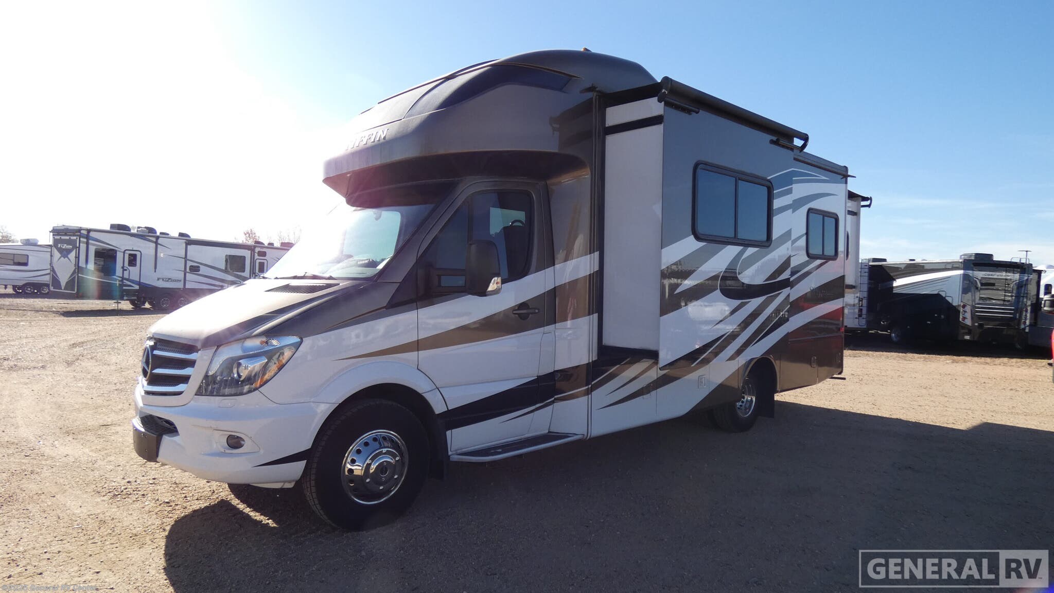 The 2017 Tiffin Wayfarer 24 QW is a delightful blend of luxury and practicality, crafted for those who crave adventure without sacrificing comfort. This compact yet spacious RV, built on a reliable Mercedes-Benz Sprinter 3500 chassis, boasts a powerful V6 engine that promises a smooth and efficient ride. With a length of just over 25 feet, it offers easy maneuverability while providing ample space for up to six sleepers, thanks to its thoughtful layout featuring a queen bed, a double bed, and a convertible sofa bed. Inside, you'll find a well-appointed center kitchen equipped with a two-burner cooktop and a mid-size refrigerator, perfect for preparing meals on the go. The front living area is inviting and cozy, ideal for relaxation or socializing, while the rear bedroom offers a private retreat with a comfortable queen bed. The center bath includes a practical shower with a curtain, ensuring convenience and privacy. A powered retractable awning extends your living space outdoors, offering shade and comfort. Whether you're embarking on a weekend getaway or an extended road trip, the Wayfarer 24 QW is designed to make every journey memorable. For more details, visit your nearest General RV dealership.