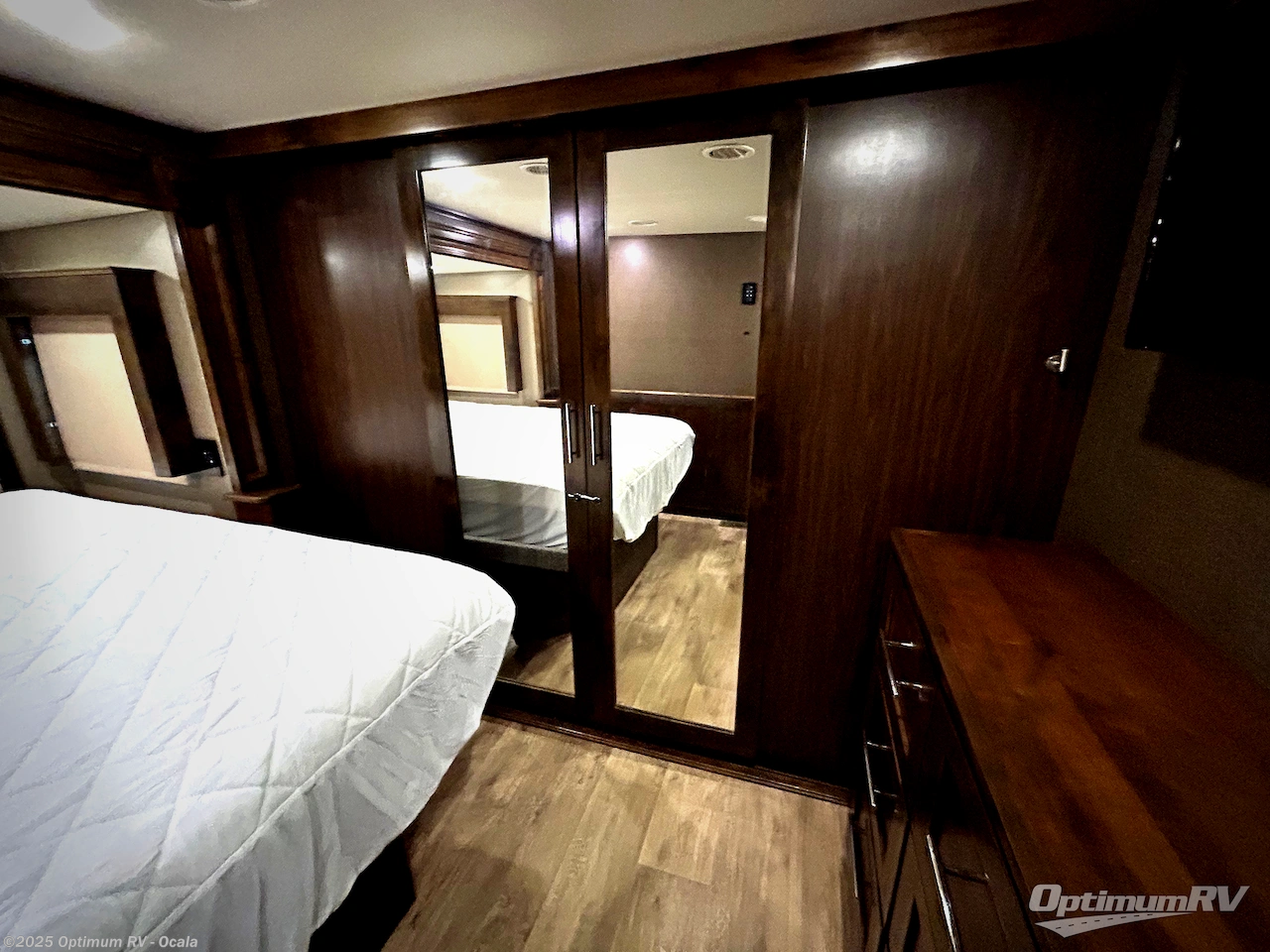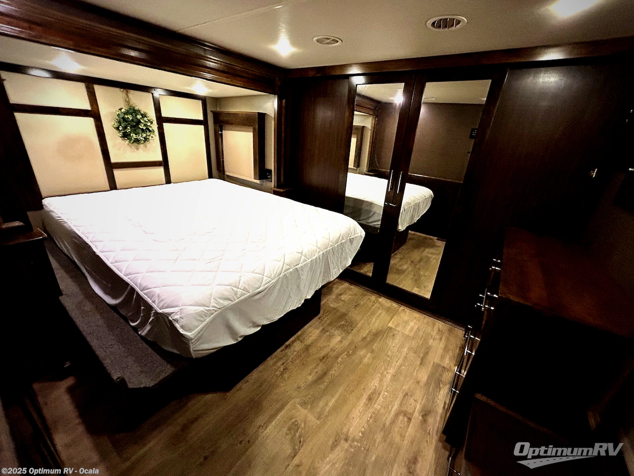 At the head of the hall you can enter a spacious private vacation retreat. Here you can relax and rest up for another fun filled day. Sleep comfortably on the queen size slide out bed including nightstands along both sides. There is a full wall wardrobe along the front wall with sliding doors for your clothing storage needs. Along the curb side wall, opposite the bed, enjoy a 40" chest of drawers with a 32" monitor above, plus so much more!