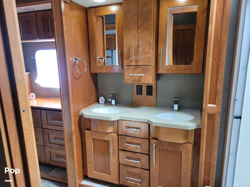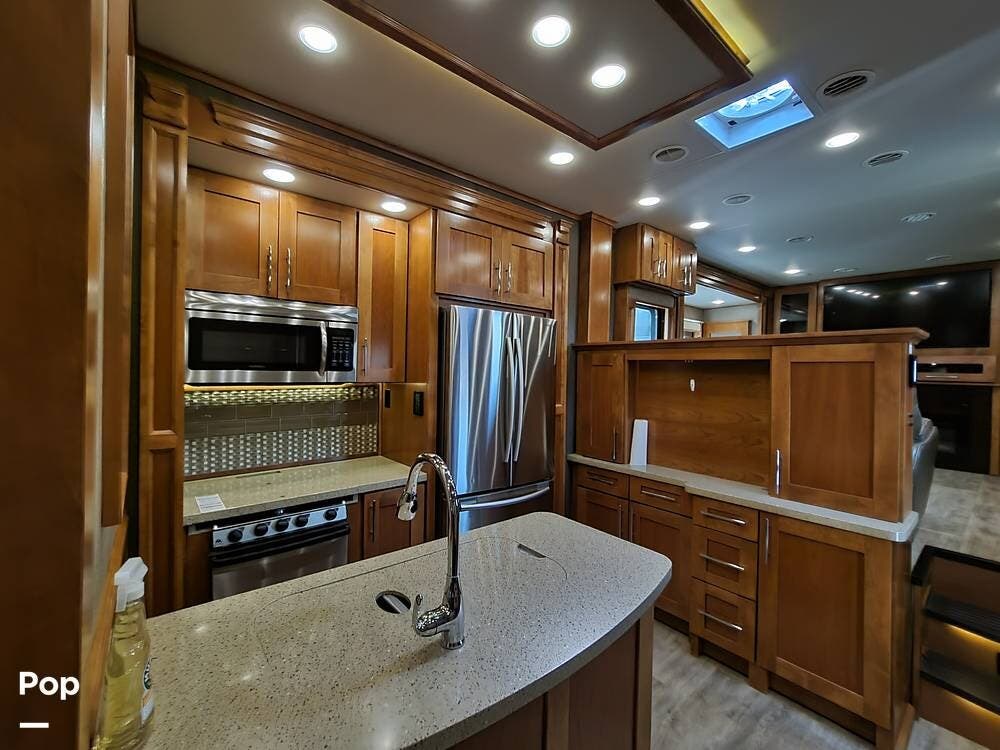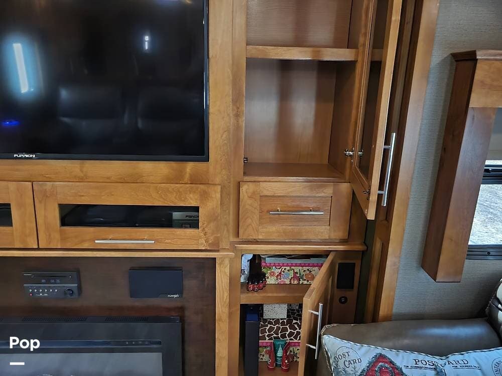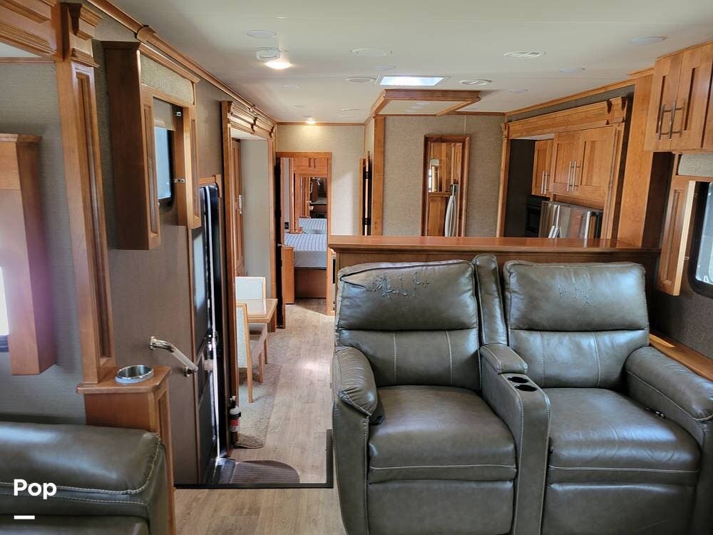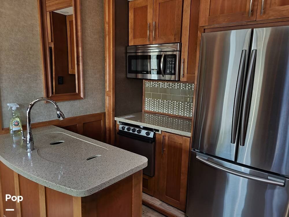 Six slides set the tone for this Vanleigh Vilano luxury fifth wheel! With this much space you will forget that you are not at home! This front living model features a spacious kitchen with residential touches, a complete bath with dual vanity sinks, and a convenient kitchen island, plus fireplace, and more!