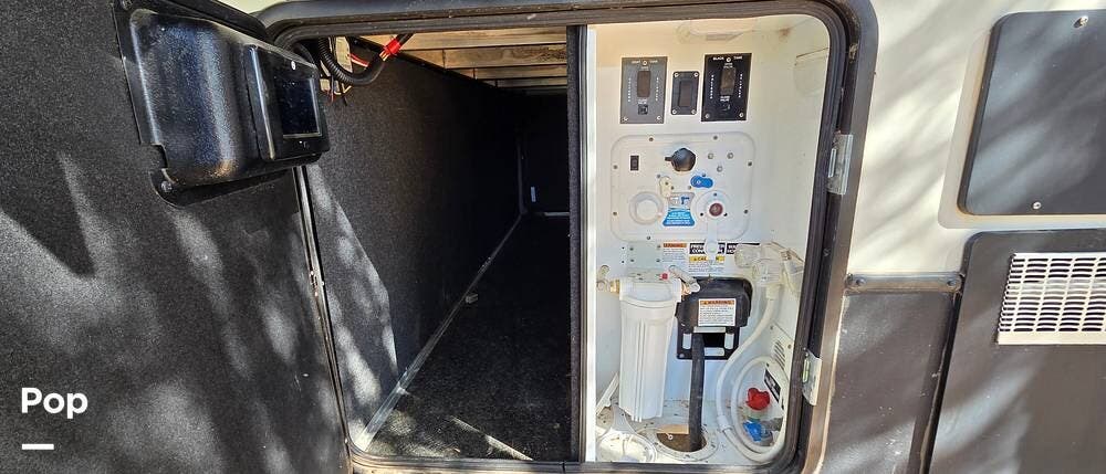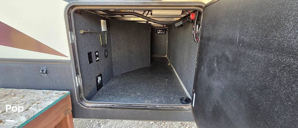 You can carry cargo up to 1.500 lbs, most of which will go in the large pass-through compartment. Set up will be easy with the auto-leveling jacks. This unit comes with two house batteries and a 1000W inverter.