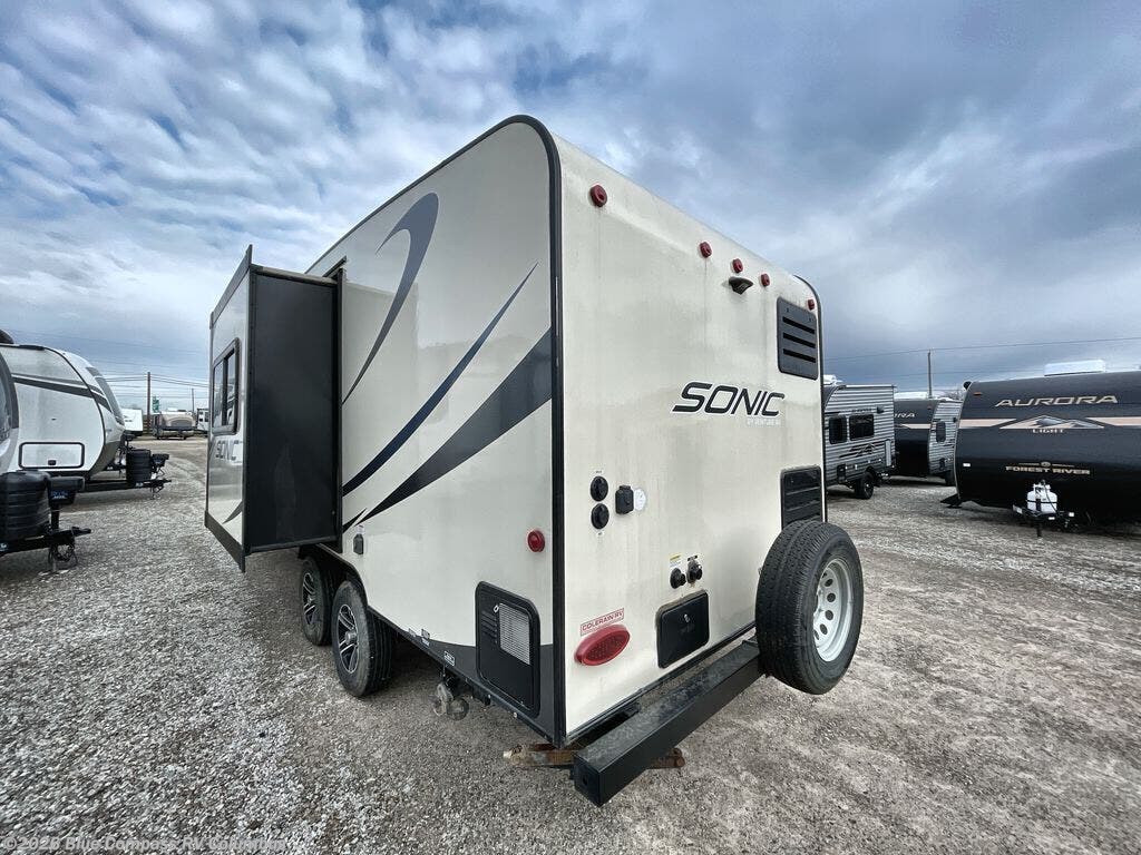 This Sonic SN200VML travel trailer by Venture RV features a single slide and a rear bathroom.
