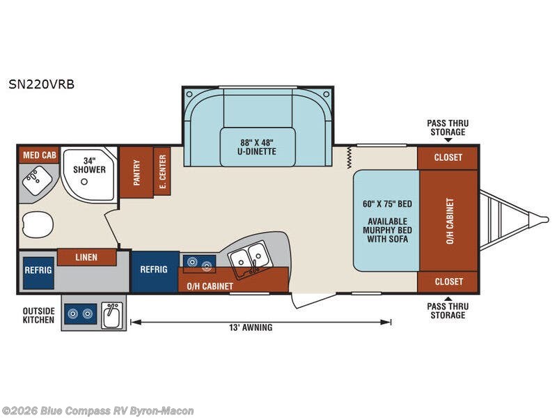 If you have been looking for a travel trailer with an outside kitchen, a single slide out u-shaped dinette, and a front bedroom then step inside this Sonic SN220VRB.