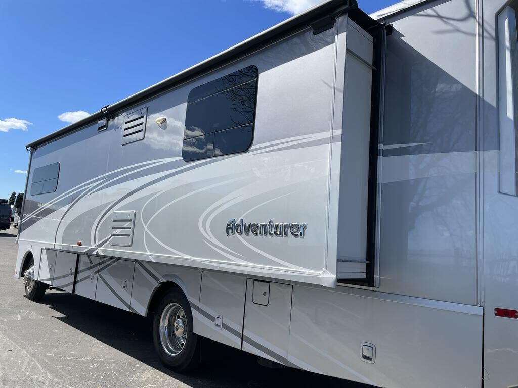 This Winnebago Adventurer model 35P is a class A gas motor home that will make any trip enjoyable. Step inside and see the generous space thanks to the full wall slide out, plus all the amenities you need and want while away from home.