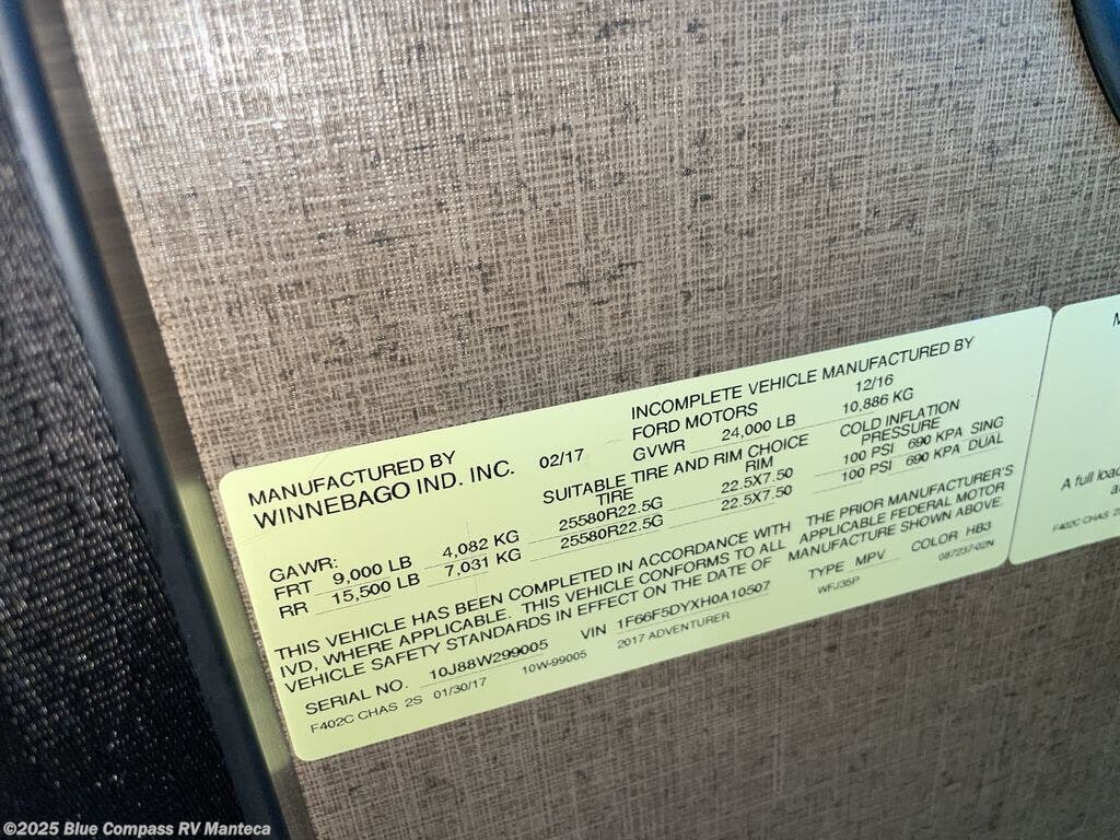 Request More Info on this 2017 Winnebago Adventurer 35P Offered for sale by Blue Compass RV Manteca