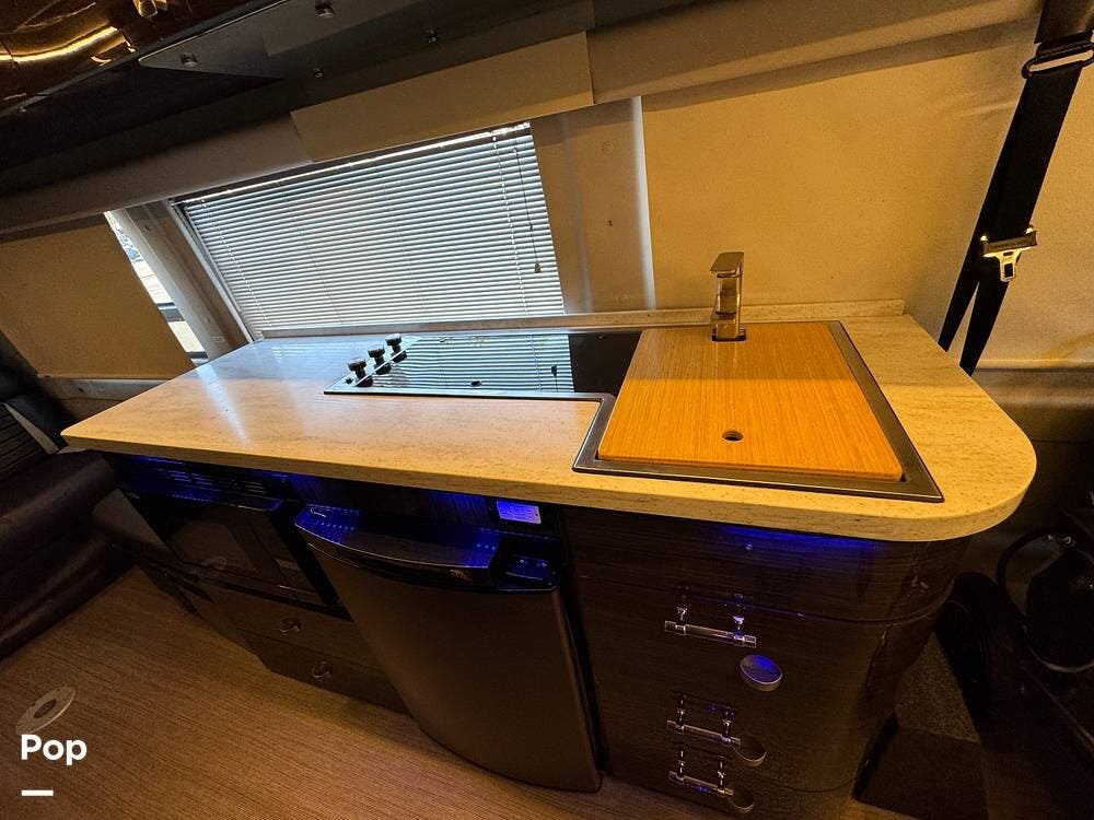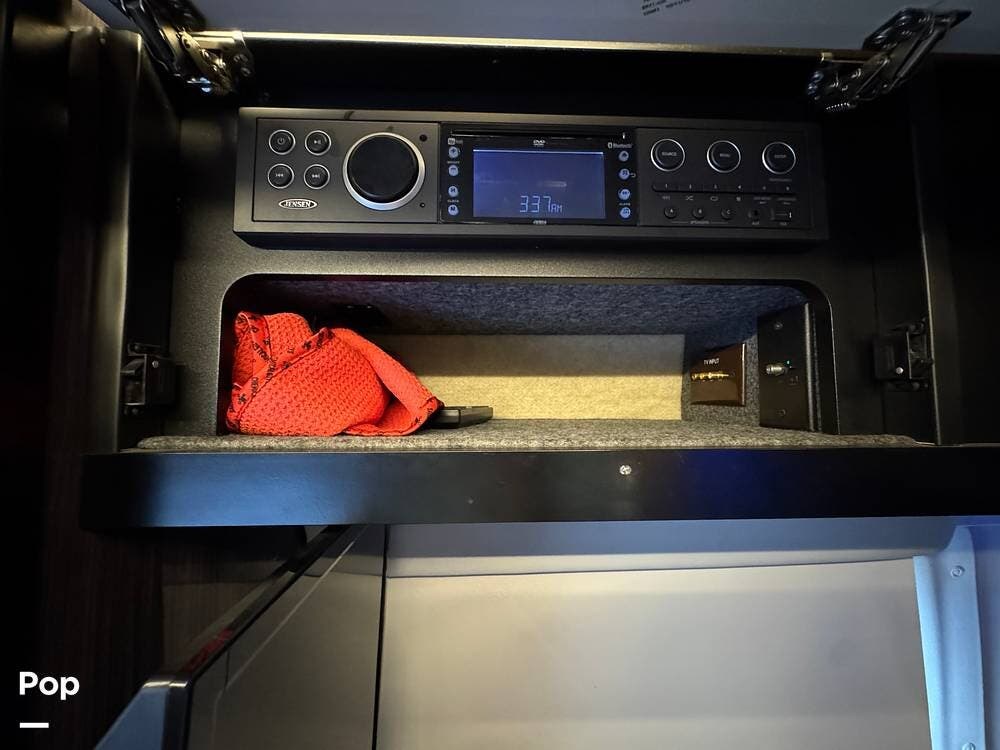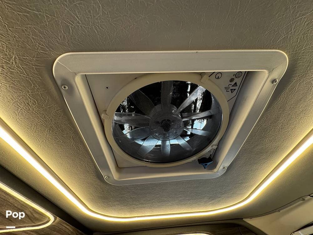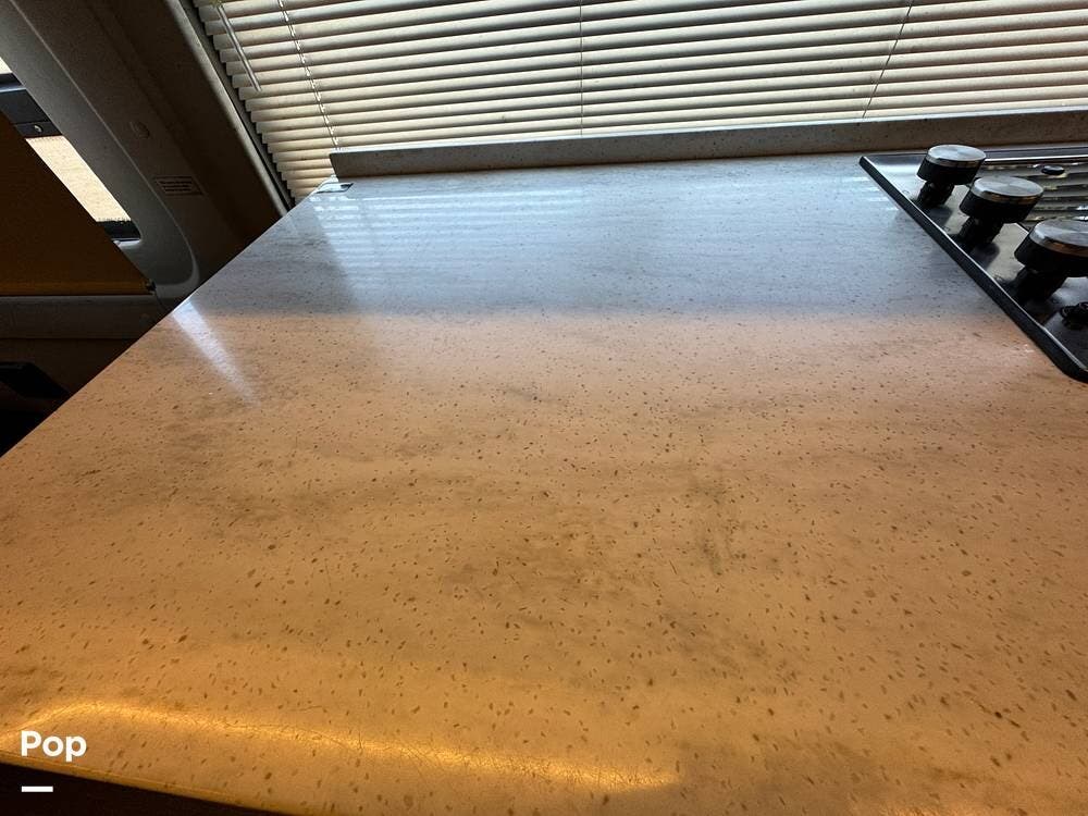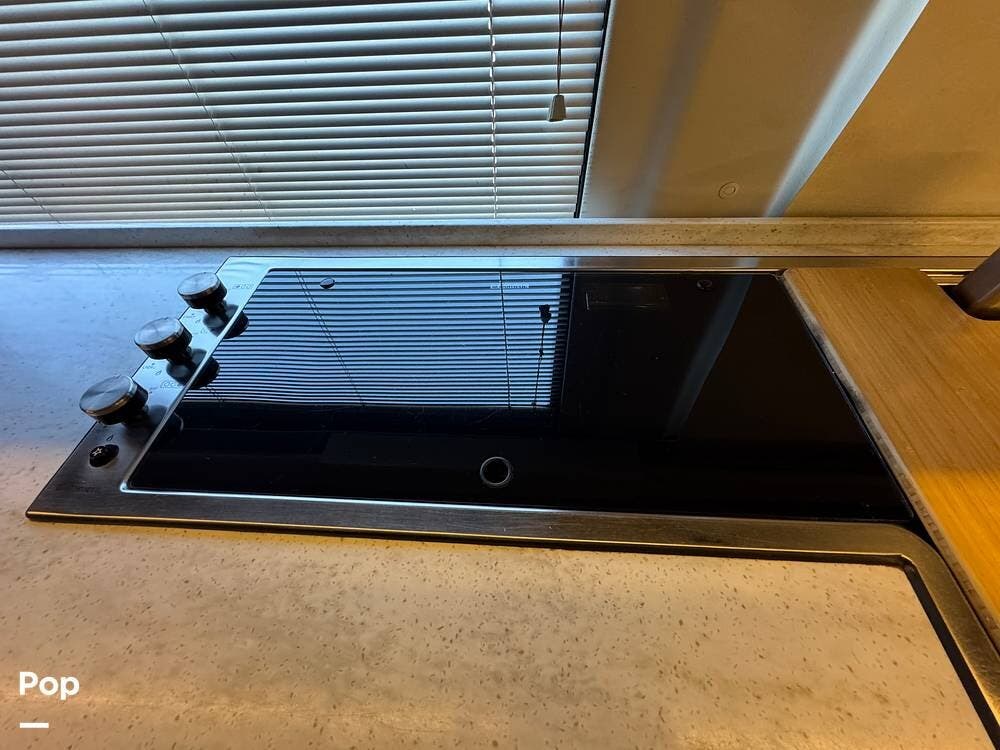 Inside, you'll find a well-designed layout featuring a single sink, a three-burner range, and an electric sofa bed that sleeps two.
