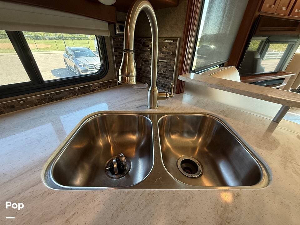 Dual 15,000 BTU AC units keep the living space cool, while the Onan 6kW diesel generator ensures reliable power wherever you are. Added conveniences, such as a washer/dryer, hydraulic leveling jacks, and ample pass-through exterior storage, make long trips effortless.