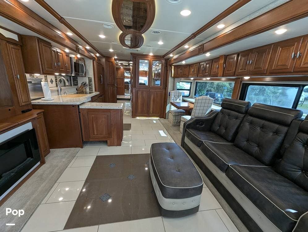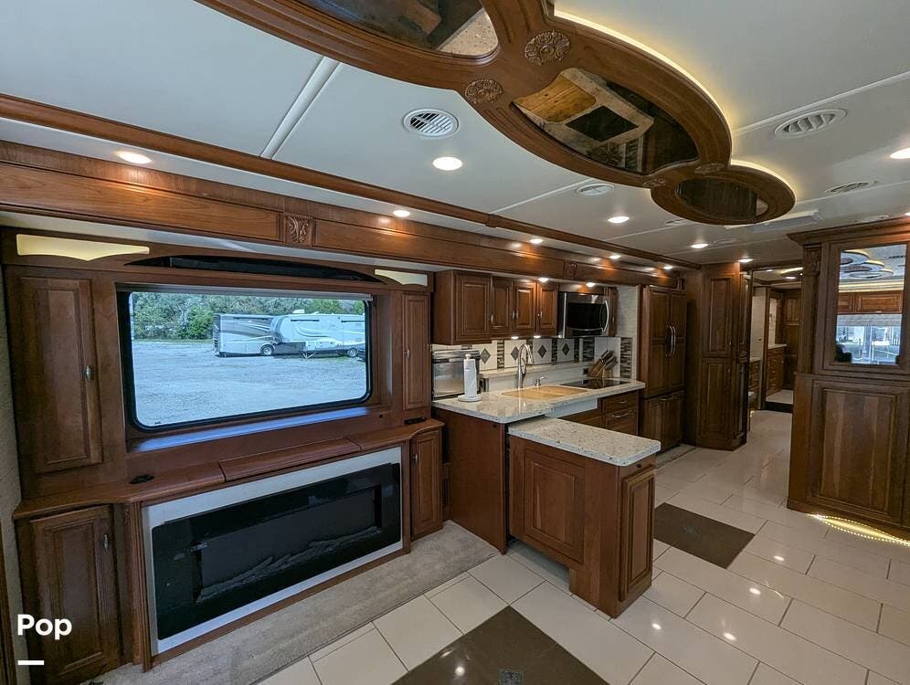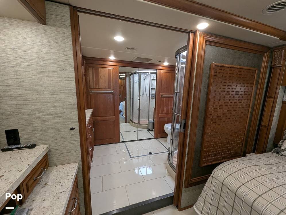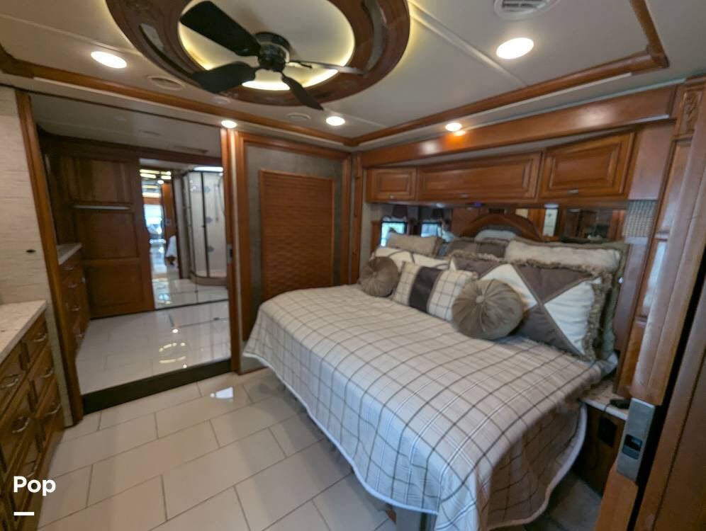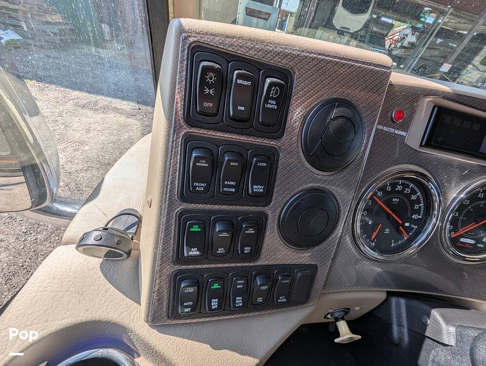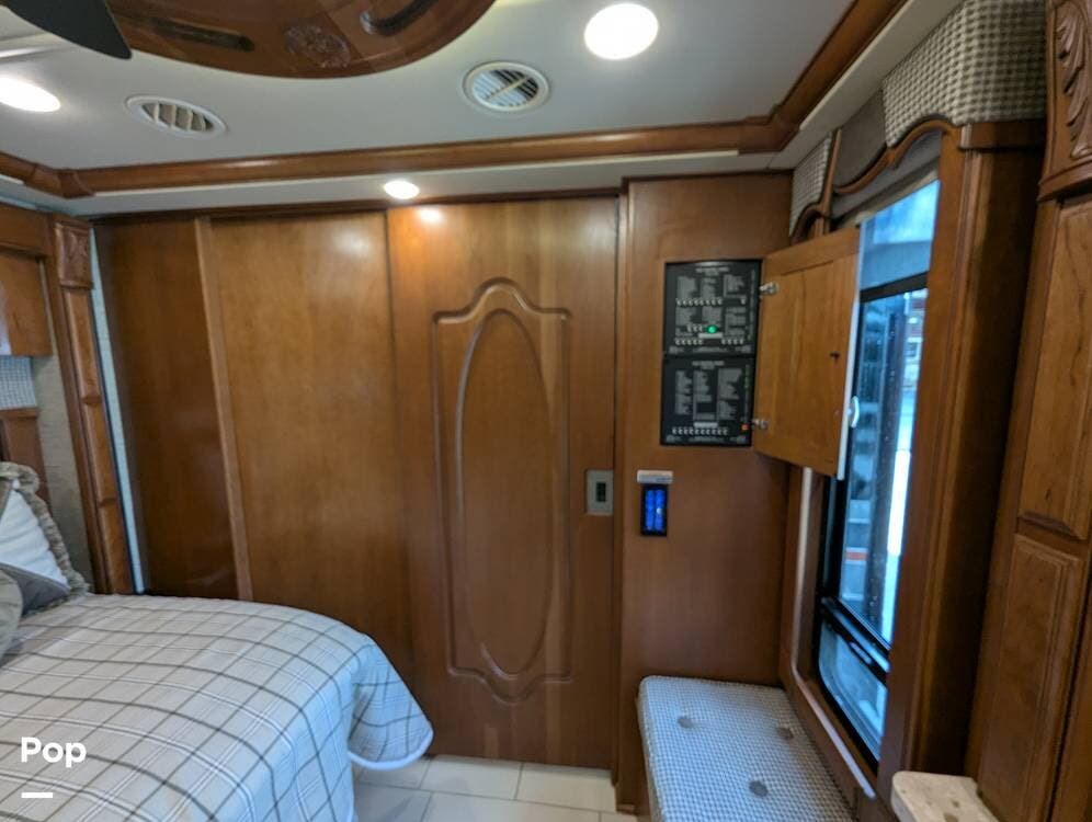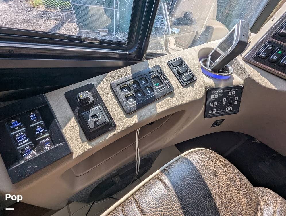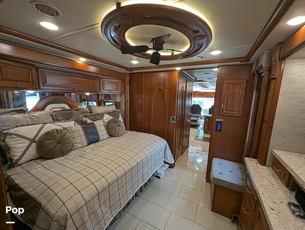 This RV is built on a Freightliner Maxum chassis and powered by a 450-horsepower Cummins ISL diesel engine, providing plenty of power and durability for even the toughest road conditions. With features like a full-body paint job, automatic hydraulic leveling jacks, and a built-in 10000kw generator, you'll have everything you need to enjoy your travels to the fullest.