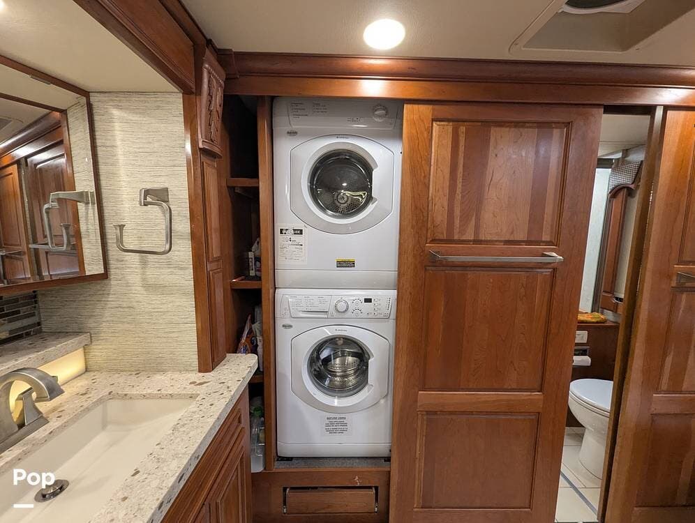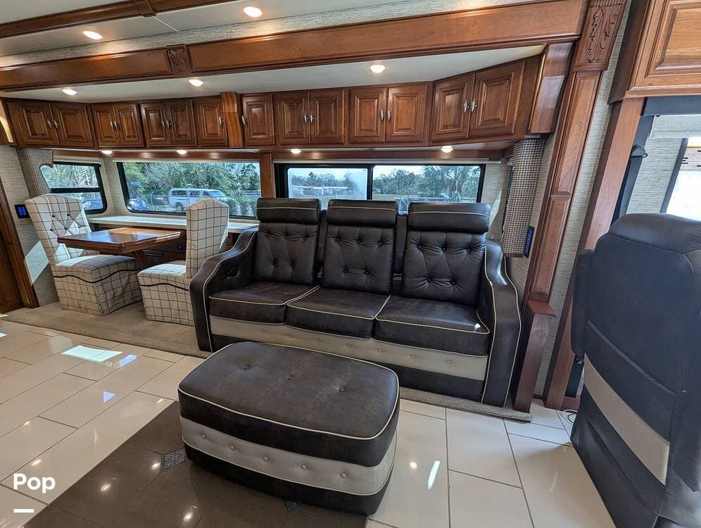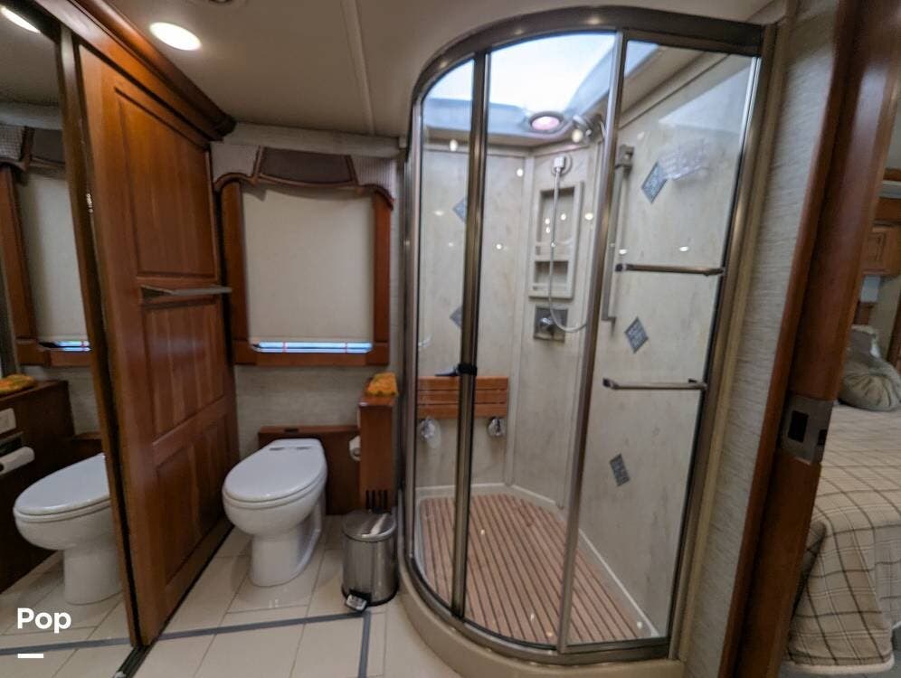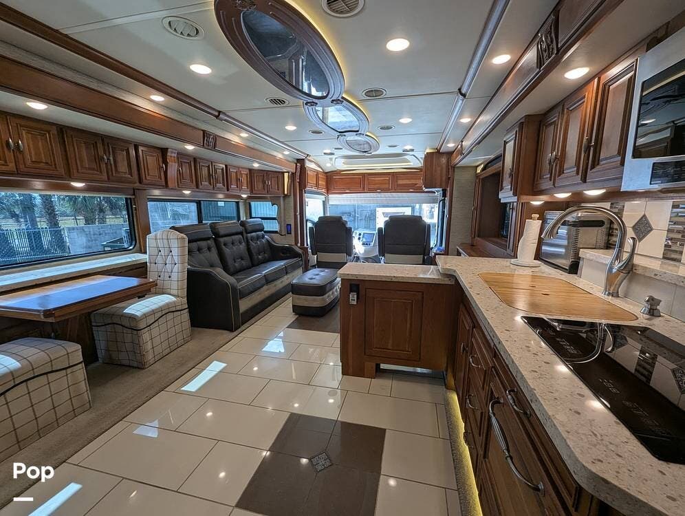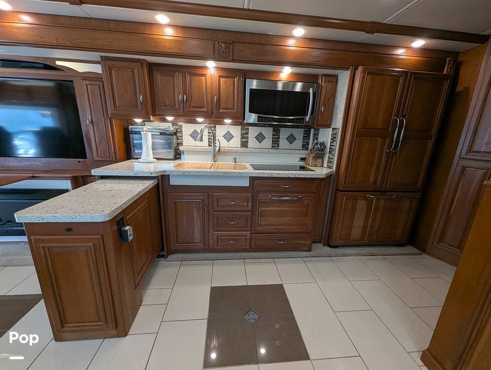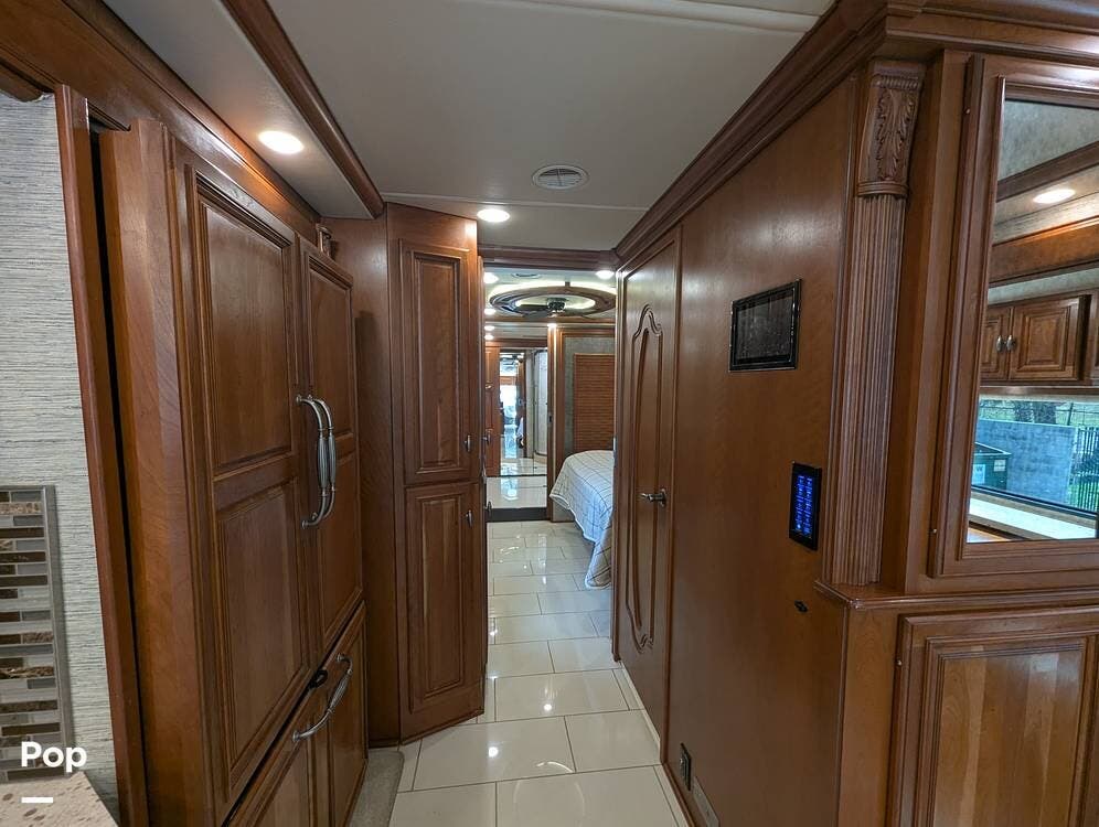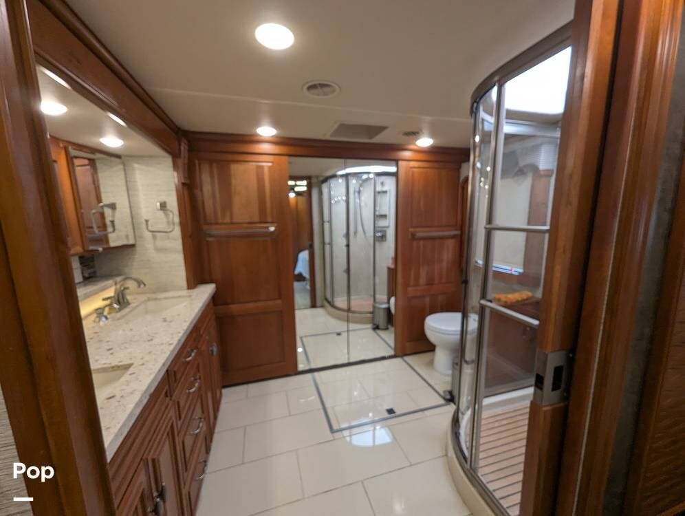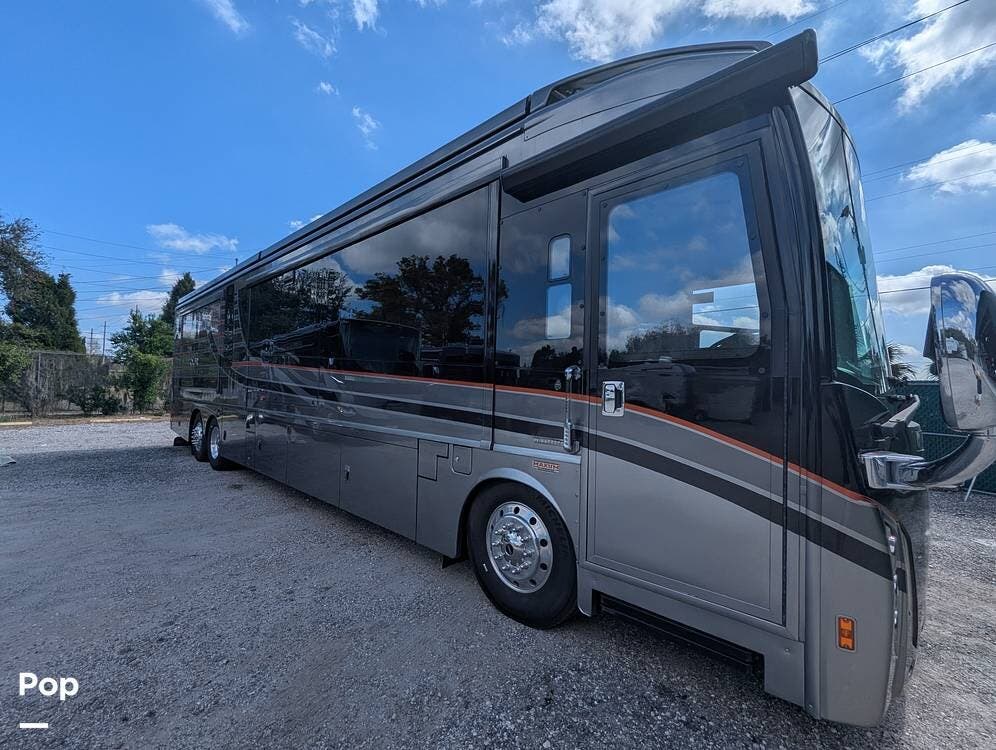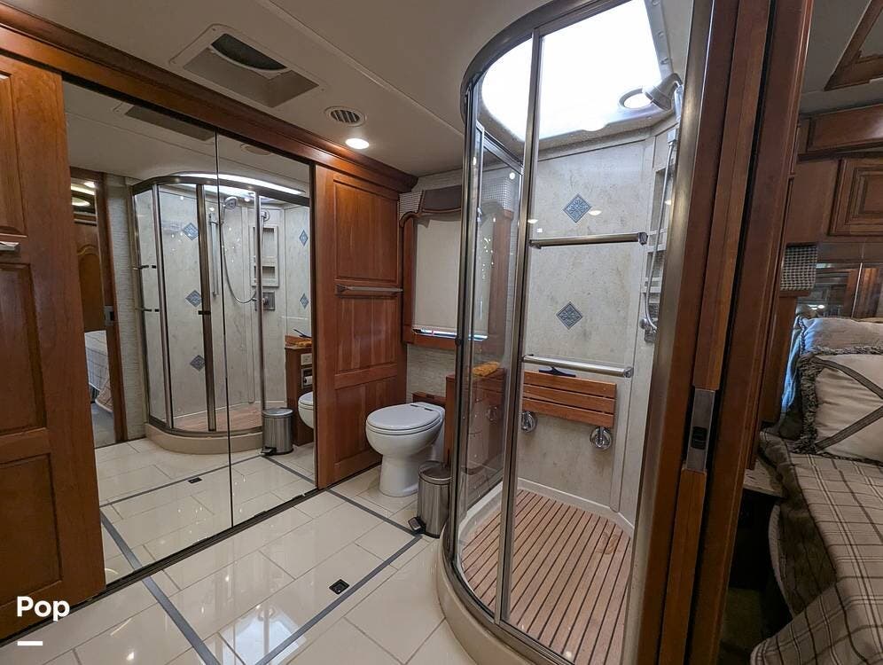 This RV is built on a Freightliner Maxum chassis and powered by a 450-horsepower Cummins ISL diesel engine, providing plenty of power and durability for even the toughest road conditions. With features like a full-body paint job, automatic hydraulic leveling jacks, and a built-in 10000kw generator, you'll have everything you need to enjoy your travels to the fullest.