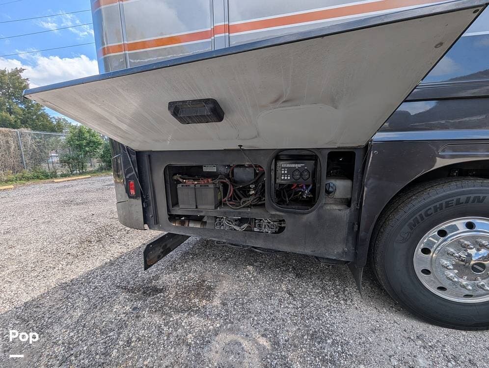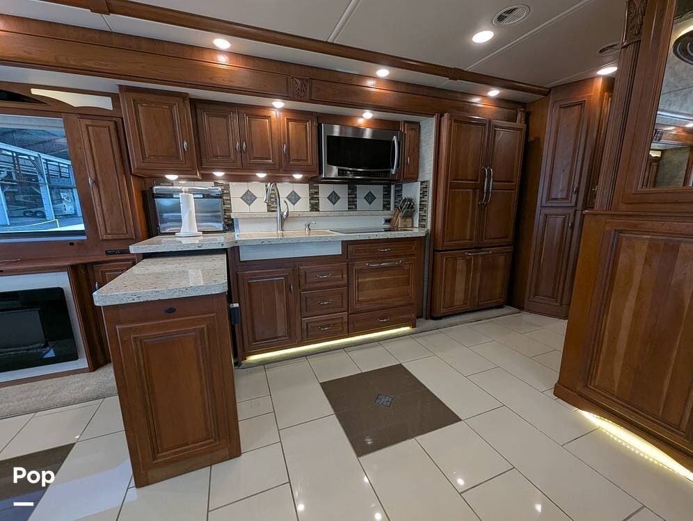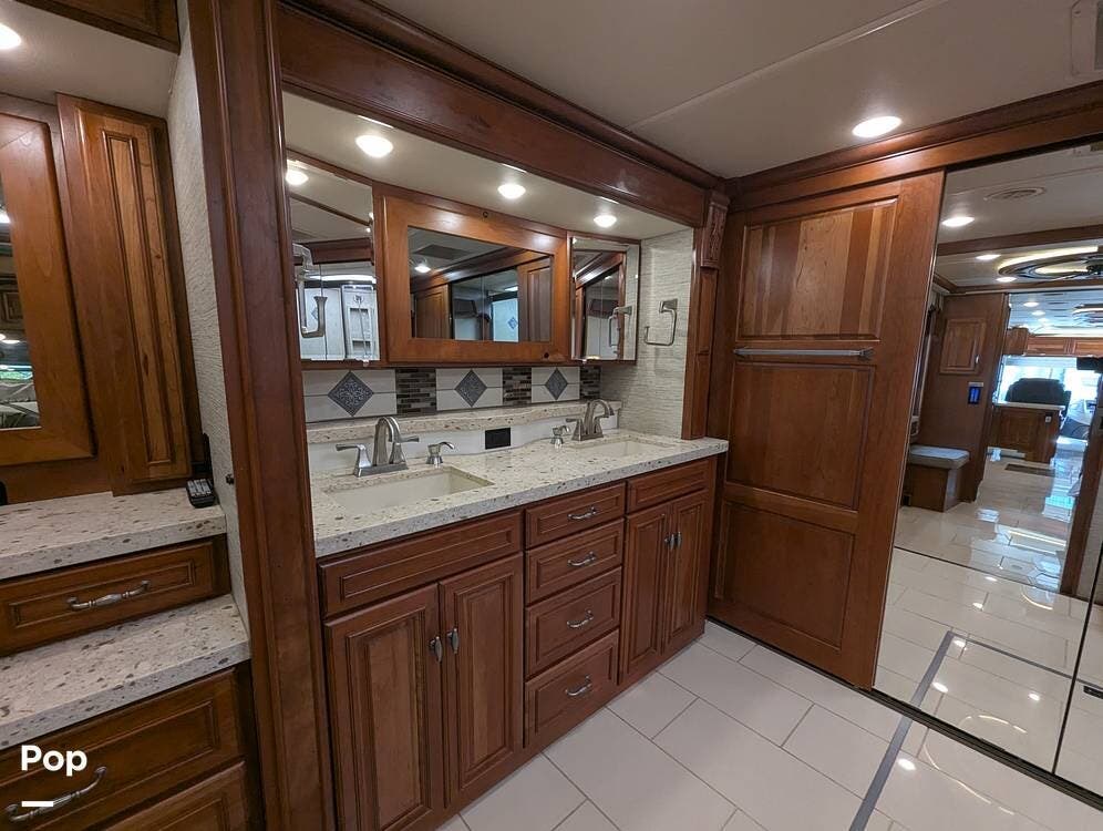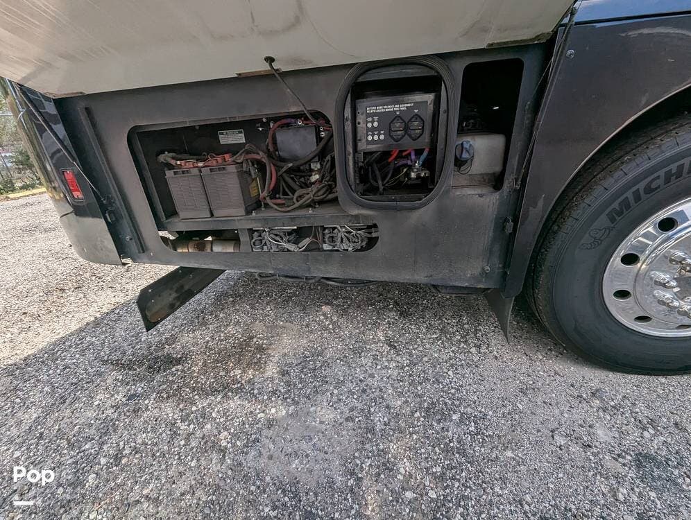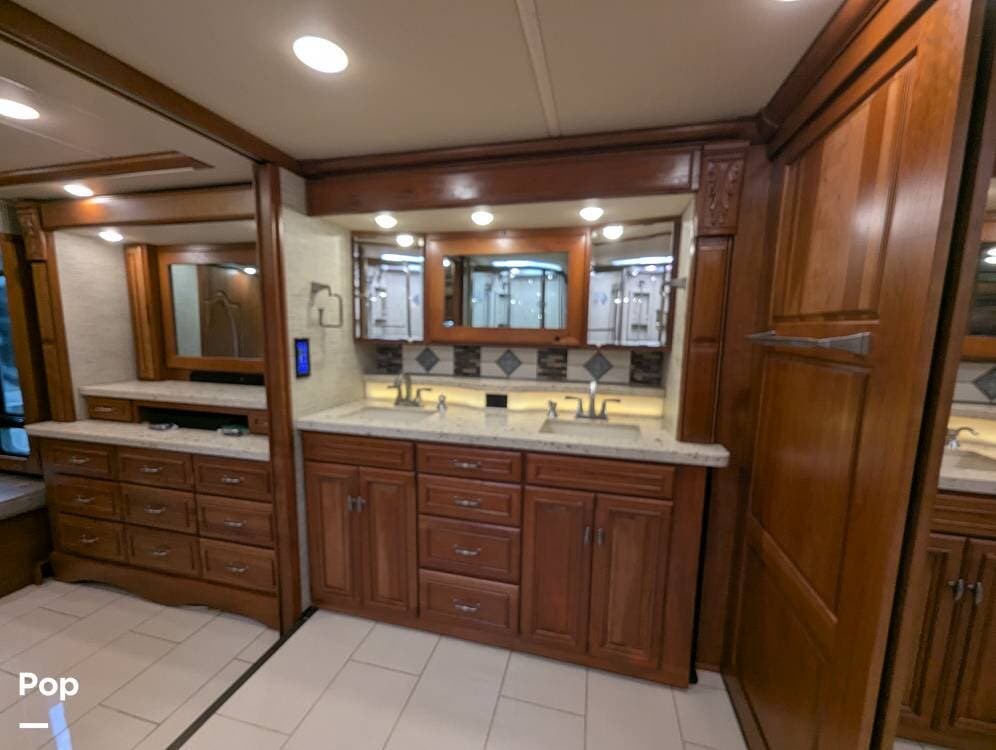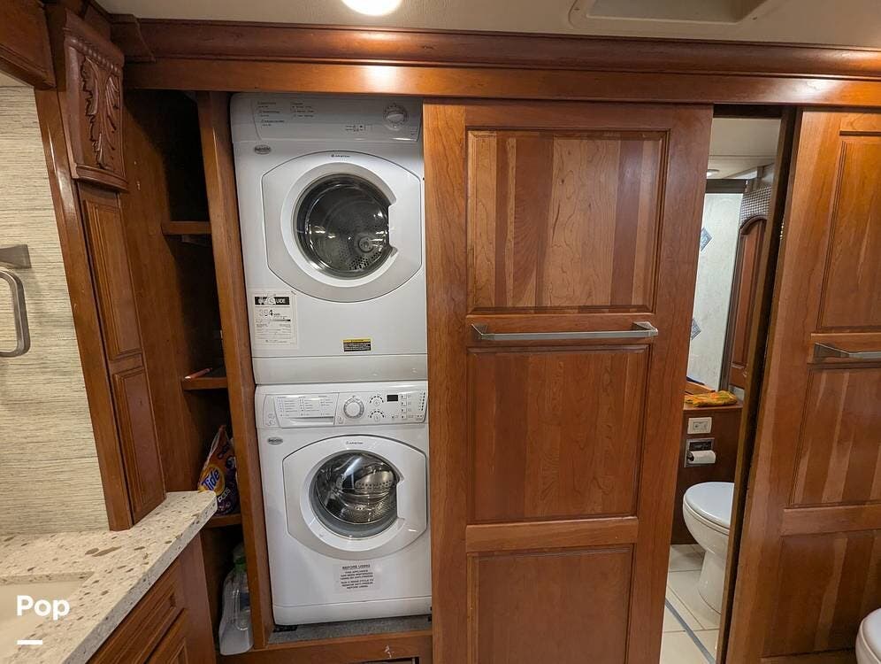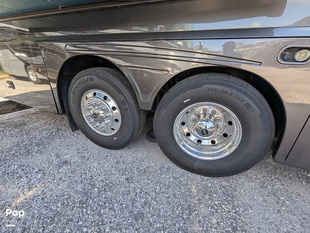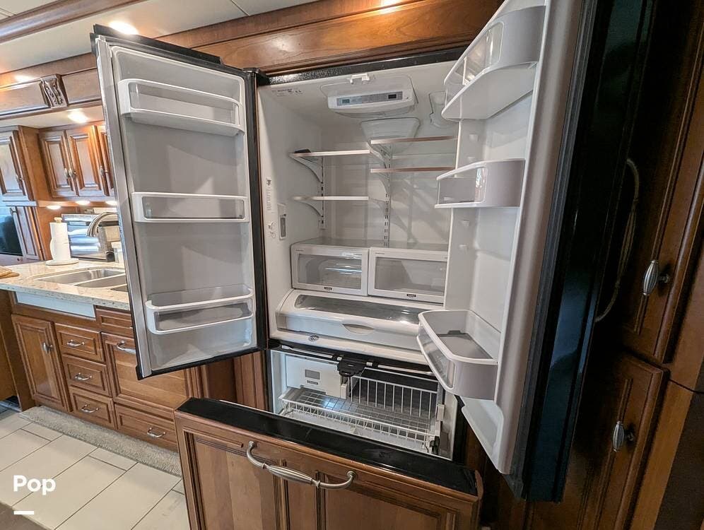 This RV is built on a Freightliner Maxum chassis and powered by a 450-horsepower Cummins ISL diesel engine, providing plenty of power and durability for even the toughest road conditions. With features like a full-body paint job, automatic hydraulic leveling jacks, and a built-in 10000kw generator, you'll have everything you need to enjoy your travels to the fullest.