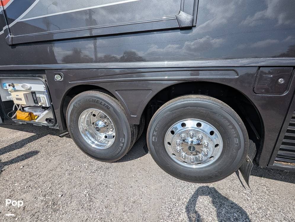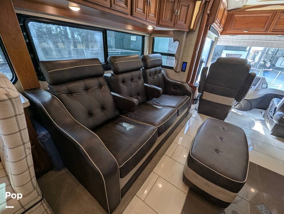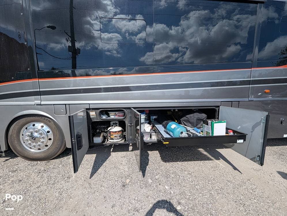 This Grand Tour 45RL includes safety features like collision avoidance, lane departure warning, and a backup camera, you can travel with confidence and peace of mind, knowing that your RV is equipped with the latest safety technology. Included are Energy Saving Custom Magne Shade for Windshield, drivers, mirror covers, tire covers, windshield wiper cover,s and passenger windows.