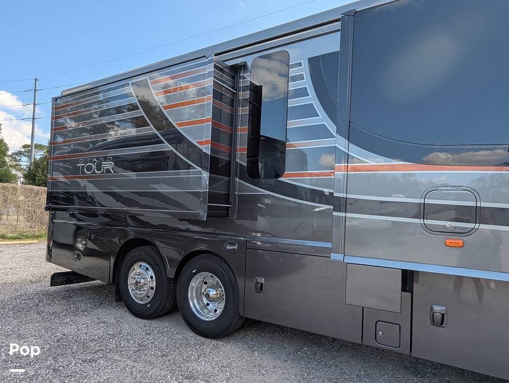 This Grand Tour has features that make it perfect for long-distance travel, full-time living, or tailgating at your favorite sporting event, with a spacious floor plan that provides plenty of room for you to enjoy the ride.