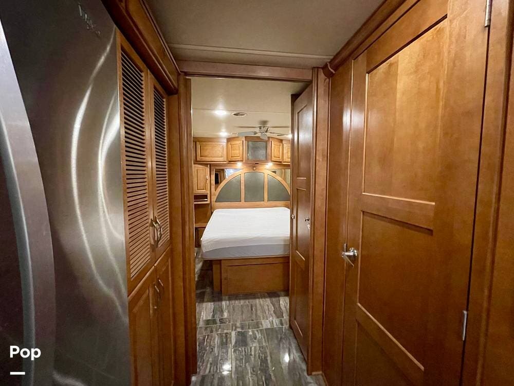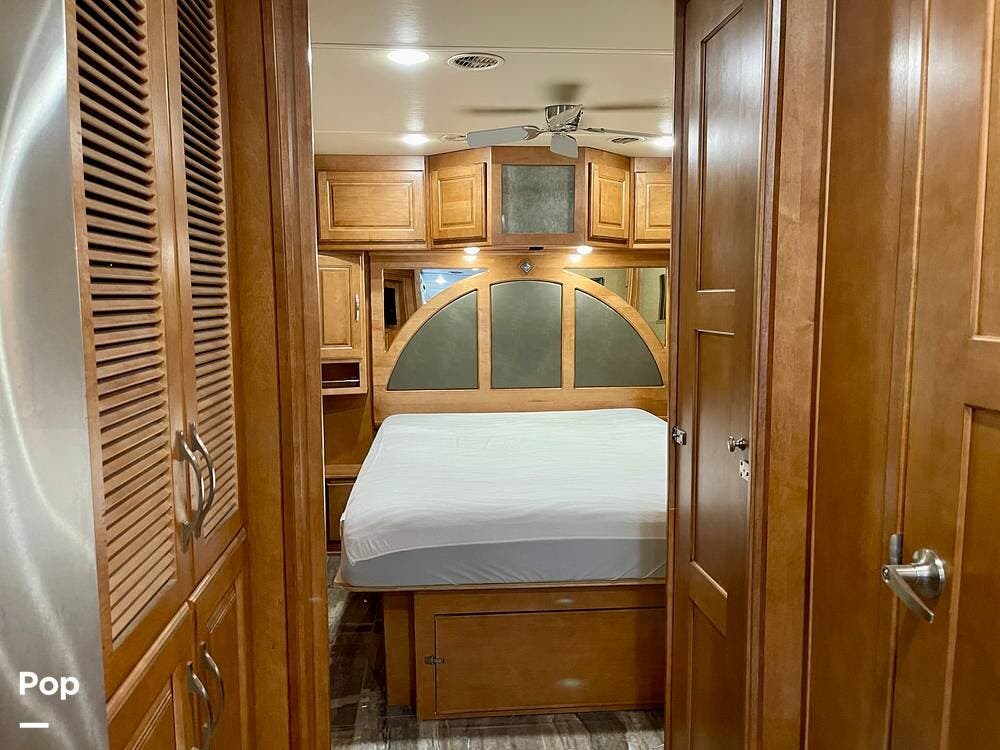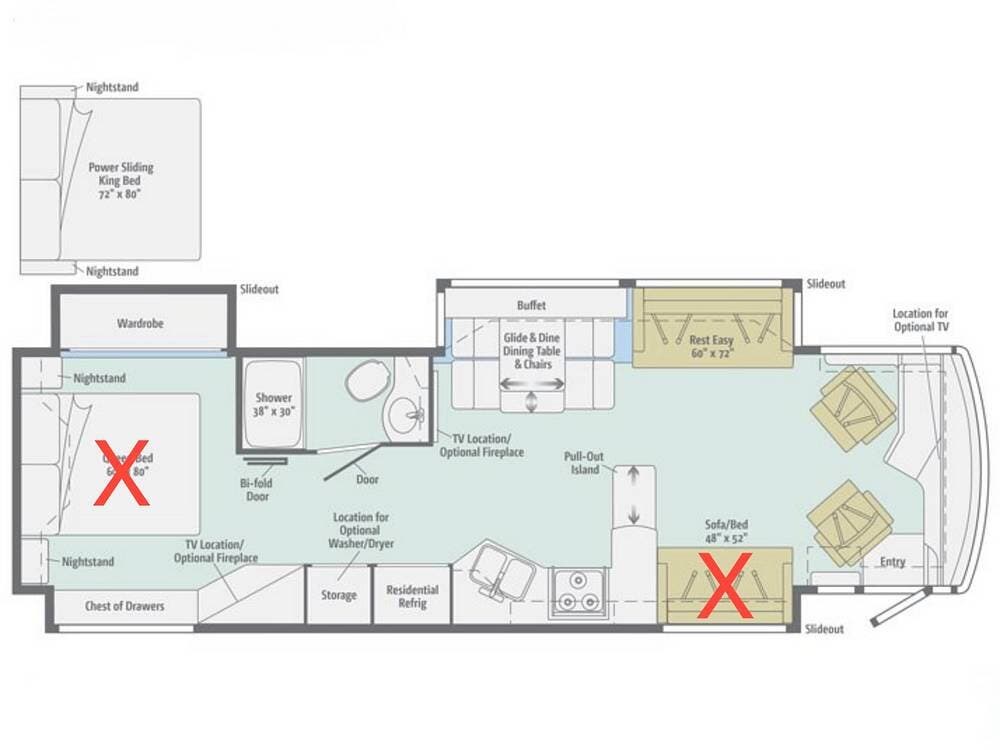 A third slide-out is found in the bedroom, where the king bed currently has a queen mattress.
