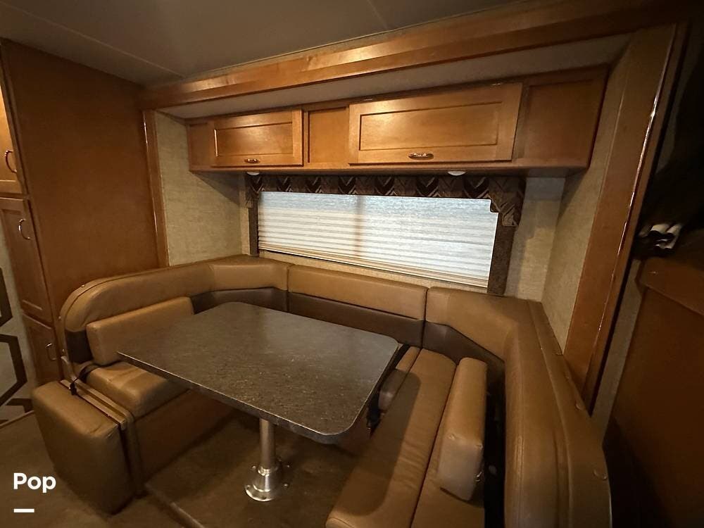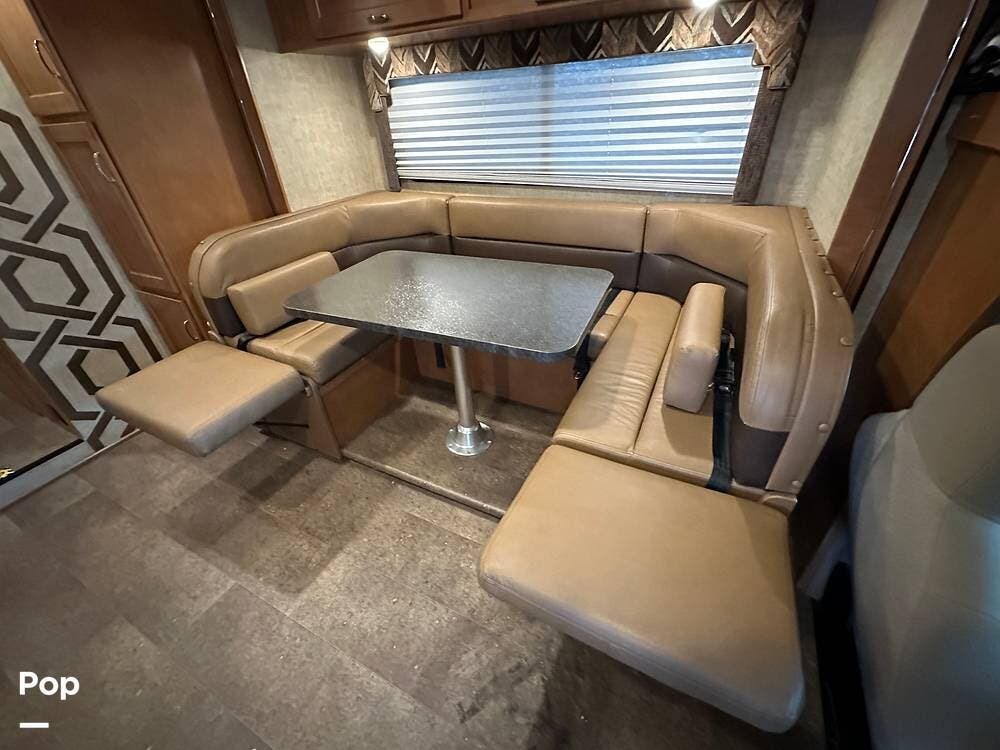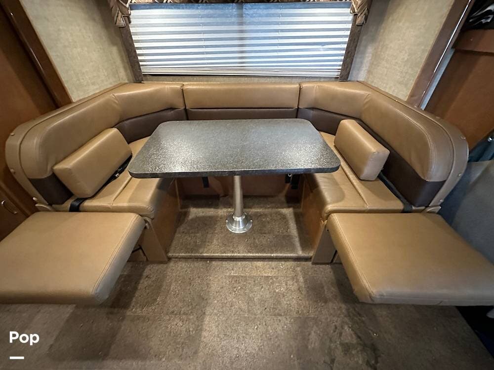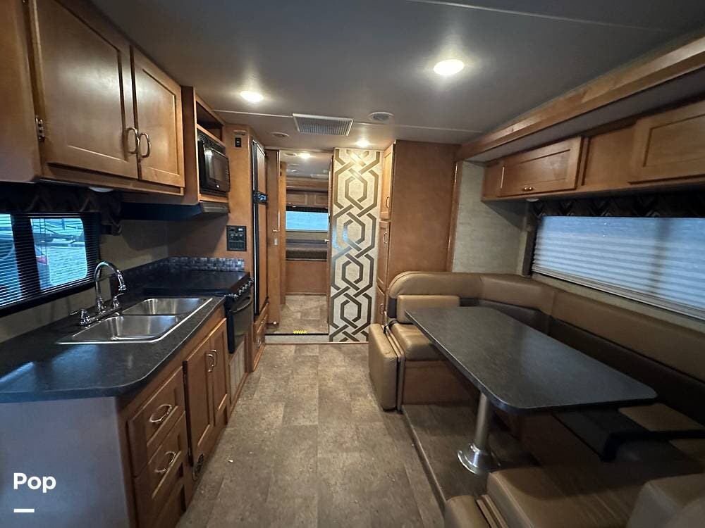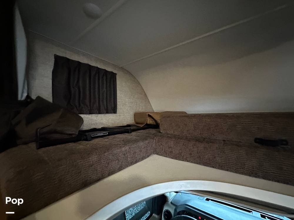 This 2016 Winnebago Minnie Winnie 26A has a roomy main area. The U-shaped dinette slide with four seat belts is perfect for meals and securing the kids when traveling. It also converts into extra sleeping space for guests. Above the cab, you'll find the over-cab bunk, which the kids will be excited about.