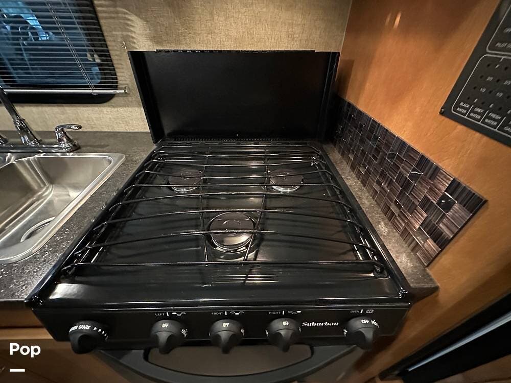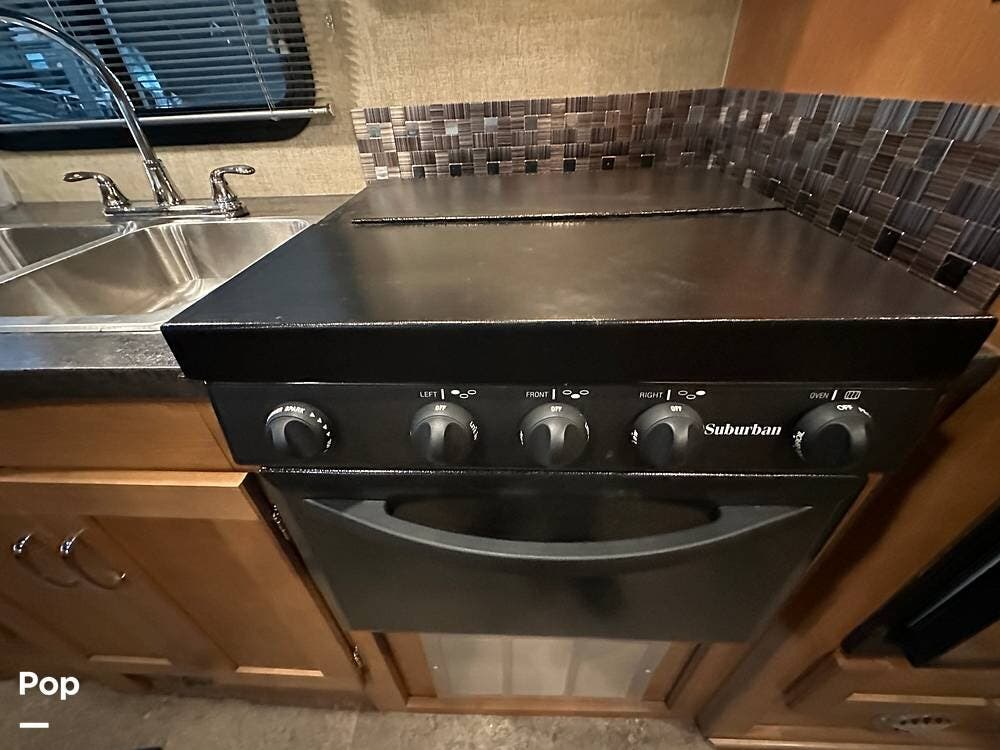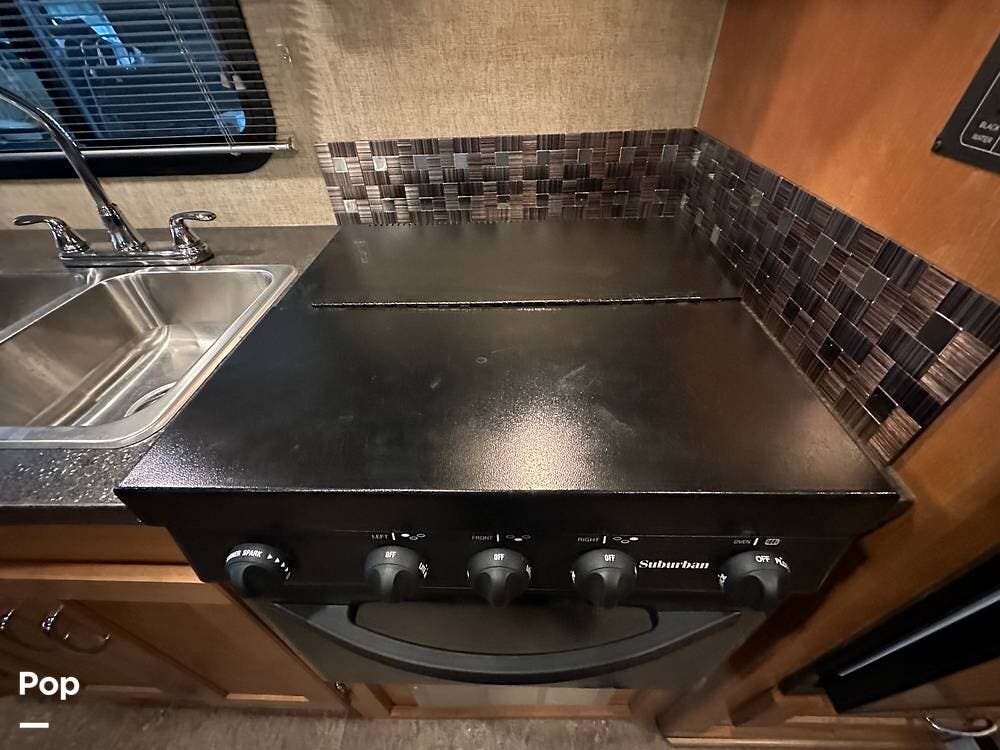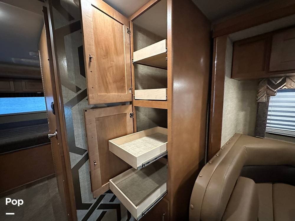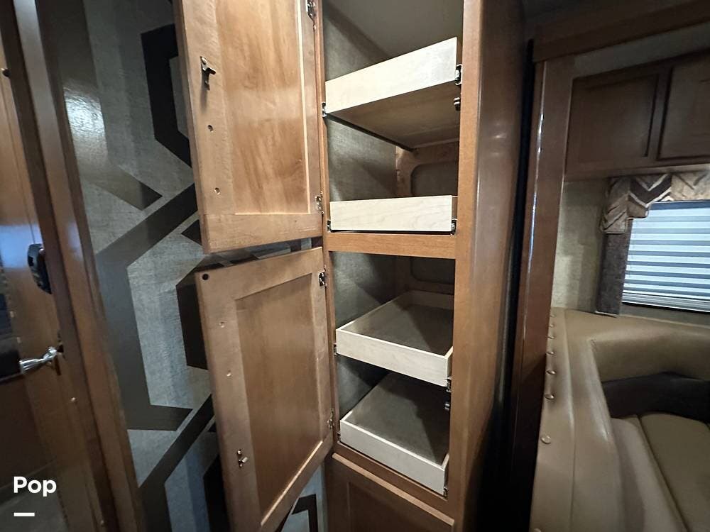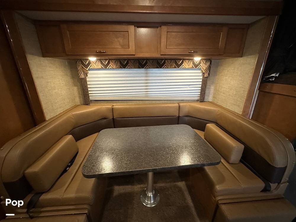 This 2016 Winnebago Minnie Winnie 26A has a roomy main area. The U-shaped dinette slide with four seat belts is perfect for meals and securing the kids when traveling. It also converts into extra sleeping space for guests. Above the cab, you'll find the over-cab bunk, which the kids will be excited about.