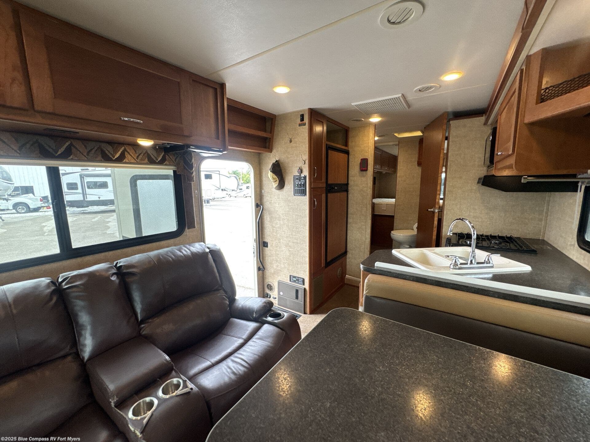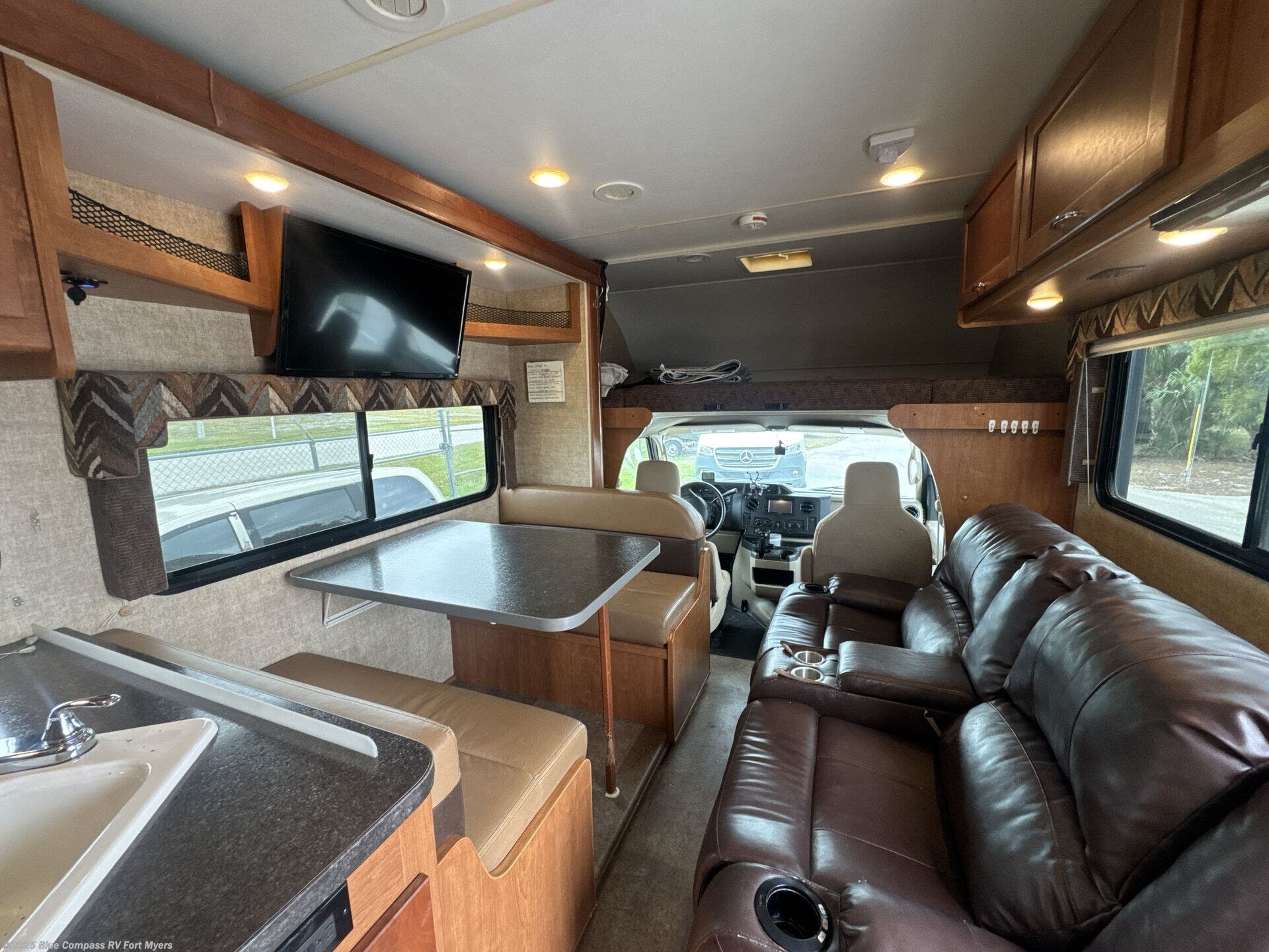 Step inside and find a sofa/bed to your right that is 40" x 67" and includes two sets of seat belts for your rear seat travelers. There is an overhead bed above the cab for two that is 57" x 95". Opposite the sofa/bed you will find additional seating with a booth dinette that also contains two sets of seat belts. You will also find a TV location above it, and a bit of storage for your things in each corner.