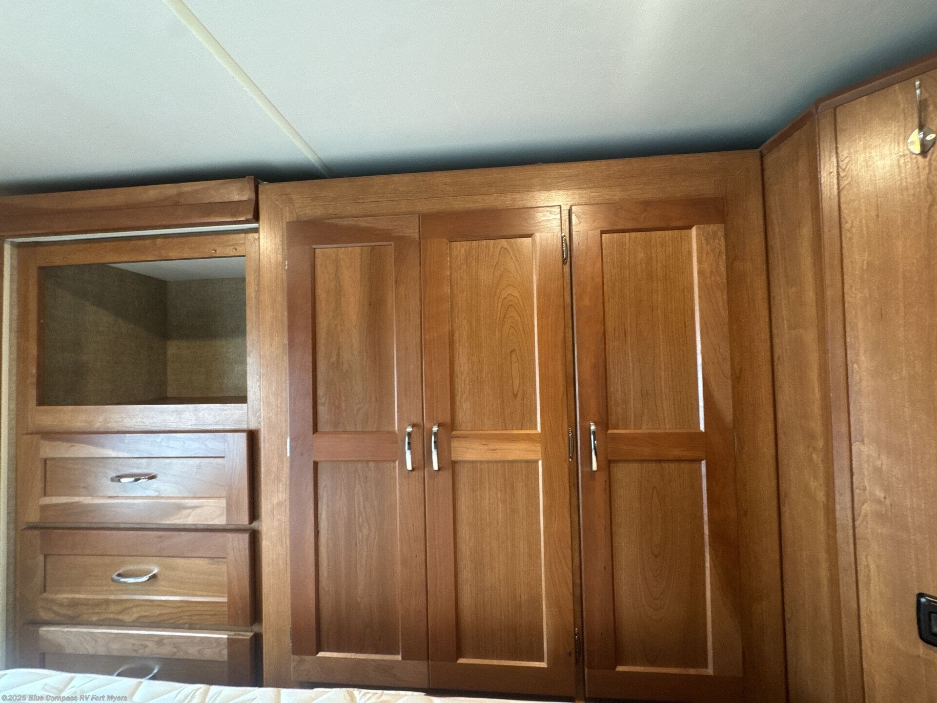 Next, create a bit of privacy for the master bedroom that still gets to take advantage of the added space thanks to the full wall slide with a double sliding door. Inside this rear bedroom space find a queen size bed with dual nightstands, overhead storage, and a wardrobe with optional TV. There is also a chest of drawers found near the end of the full wall slide, and so much more!