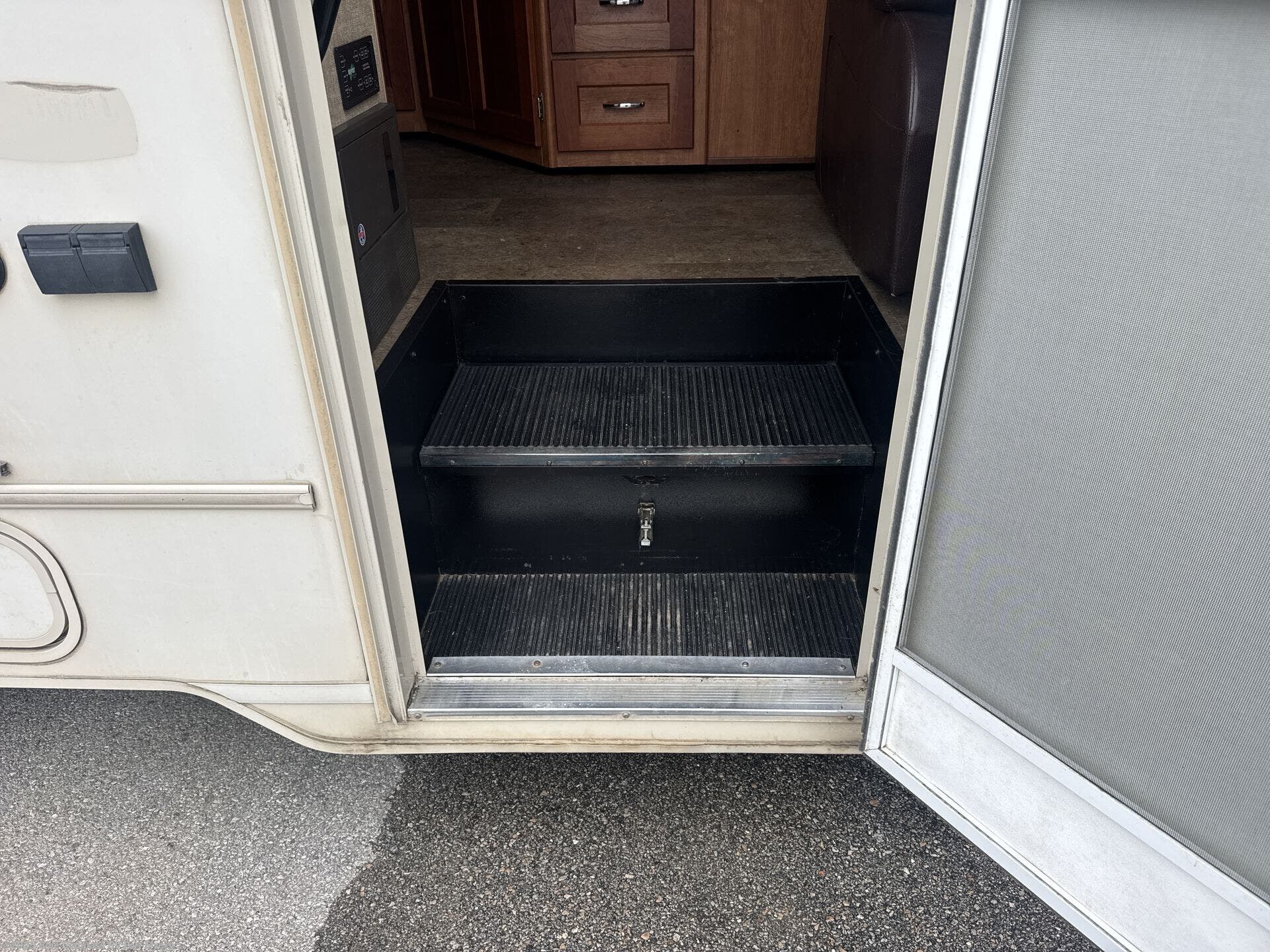 Opposite the bath within the full slide there is a set of bunk beds that the kids will certainly love. You can add an optional TV along the outer bathroom wall opposite the bunks for easy viewing from within each.
