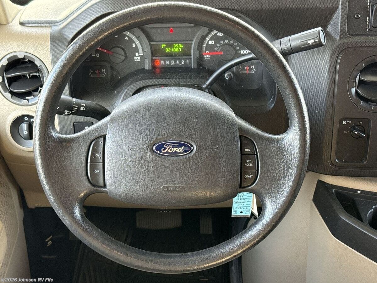 Features Include: 155-Amp Alternator, 4-Wheel ABS, Wheel Covers, Running Boards, Power Door Locks, Sunvisors, AM FM CD Radio, 12v Powerpoint, Power Steering, Tilt Steering, Patio Awning, Porch Light, Vinyl Ceiling, Vinyl Flooring, LED Lighting, Tinted Glass, Pleated Night Shades, Pantry (vbm), Laminate Countertop, Mini Blinds, Refrigerator, Designer Backsplash, 3-Burner Cooktop, Systems Center, USB Charger Ports, Digital HDTV Antenna, Double or Queen Bed, Foam Mattress, Overbed Storage, Nightstand(s), Wardrobe, Drawers, Foam Mattresses, Mini Blinds, Linen Storage, Skylight, Flexible Showerhead, Foot Flush Toilet, LP Tank with Gauge, 30-Amp Service Cord, GFCI Circuit, 20k or 30k Furnace, Coleman-Mach 15 AC, City Water Fill, Fiberglass Laminate, Fiberglass Roof