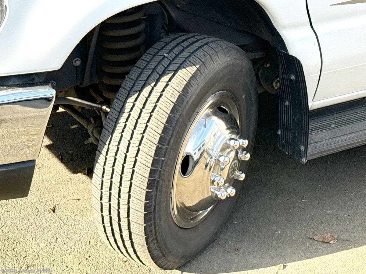 The 2017 Winnebago Spirit 22R is a versatile and reliable Class C RV designed to offer comfort and convenience on the road. With a mileage of 32,073 miles, this pre-owned vehicle is well-maintained and ready to embark on new adventures. Under the hood, you'll find a robust Triton 6.8L V10 SEFI gas engine, paired with a TorqShift 6-Speed Automatic Overdrive transmission. This powerful combination ensures a smooth and efficient drive, whether you're cruising on highways or navigating through city streets. The RV is built on a sturdy Ford E350 or E450 chassis, complemented by a 155-amp alternator and 4-wheel ABS for enhanced safety and performance. ### Interior Features: - **Cab Features:** - Running boards for easy entry - Power door locks for added security - Overhead bunk roof vent - Driver and passenger airbags - Adjustable slide recline seats - Sunvisors and pivot arm side-mirrors - AM/FM/CD radio system - 12v Powerpoint, power steering, tilt steering, and cruise control - **Living Space:** - Patio awning and porch light to enhance your outdoor experience ?? - Vinyl ceiling and flooring with LED lighting for a modern touch - Tinted glass and pleated night shades for privacy - Designer window treatments for a stylish ambiance ### Dining and Kitchen: - Pantry for ample storage - Laminate countertop and mini blinds - Refrigerator and designer backsplash - 3-burner cooktop with range hood light and vent ?? - Microwave oven for quick meal preparation ### Electronics: - Systems monitor center - LP, CO, and smoke detectors for safety - USB charger ports and digital HDTV antenna ?? - 32-inch HDTV and DVD player for entertainment on-the-go ### Sleeping Arrangements: - Comfortable double or queen bed with foam mattress - Bedspread or mattress cover - Overbed storage, nightstand(s), wardrobe, and drawers - Roof vent bunk beds with foam mattresses - Privacy curtains for an undisturbed slumber ### Bathroom: - Mini blinds for privacy - Vanity sink and mirror - Linen storage and skylight - Flexible showerhead and foot flush toilet - Power vent for ventilation ### Mechanical Features: - Battery disconnect switch and deep-cycle Group 24 battery - Automatic dual battery charge - LP tank with gauge, 30-amp service cord, and 55-amp converter charger - Onan MicroQuiet generator for on-demand power - 20k or 30k furnace and Coleman-Mach 15 AC - City water fill, 6-gal hot water ### Exterior and Build: - Welded aluminum framework and fiberglass laminate - High gloss fiberglass skin and fiberglass roof - Lighted trunk storage providing generous space for gear The 2017 Winnebago Spirit 22R blends practicality with comfort, making it an excellent choice for those who enjoy road trips and camping. With its reliable construction and thoughtful amenities, this RV is sure to enhance your travel experiences. ???