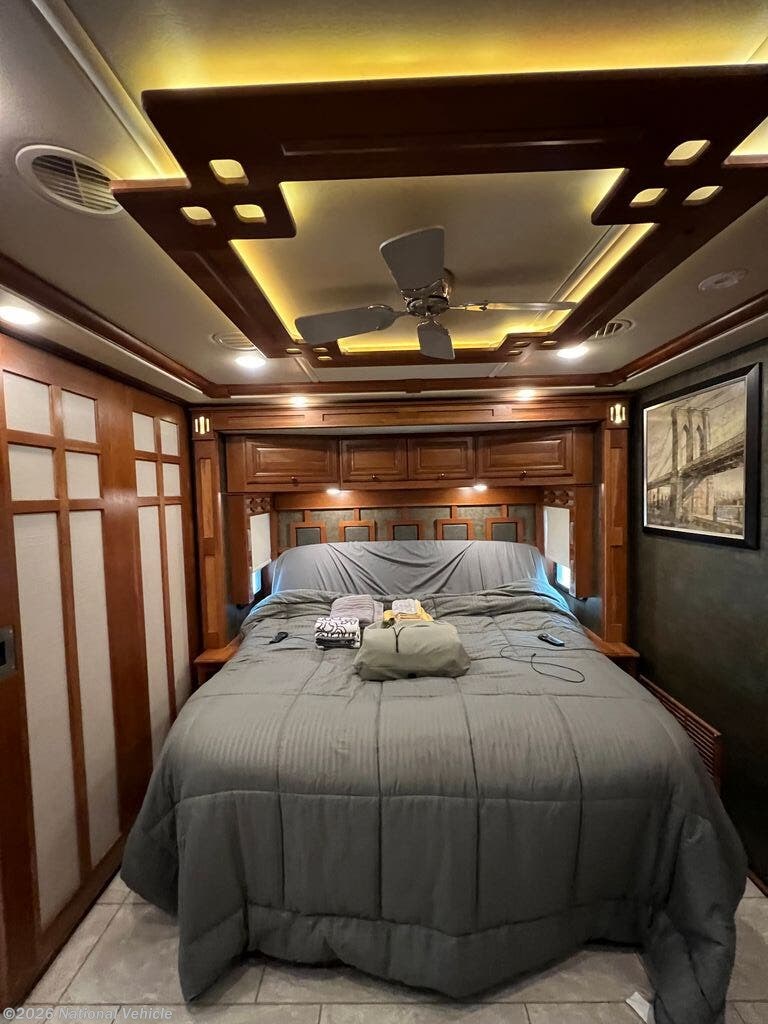 A sliding door leads you into the rear master bedroom where you will enjoy a Recline/Incline king bed slide out including nightstands, plus overhead storage cabinets. The very rear features a master bath with BIG shower, slide out linen cabinet, vanity with sink, and washer/dryer, plus so much more!