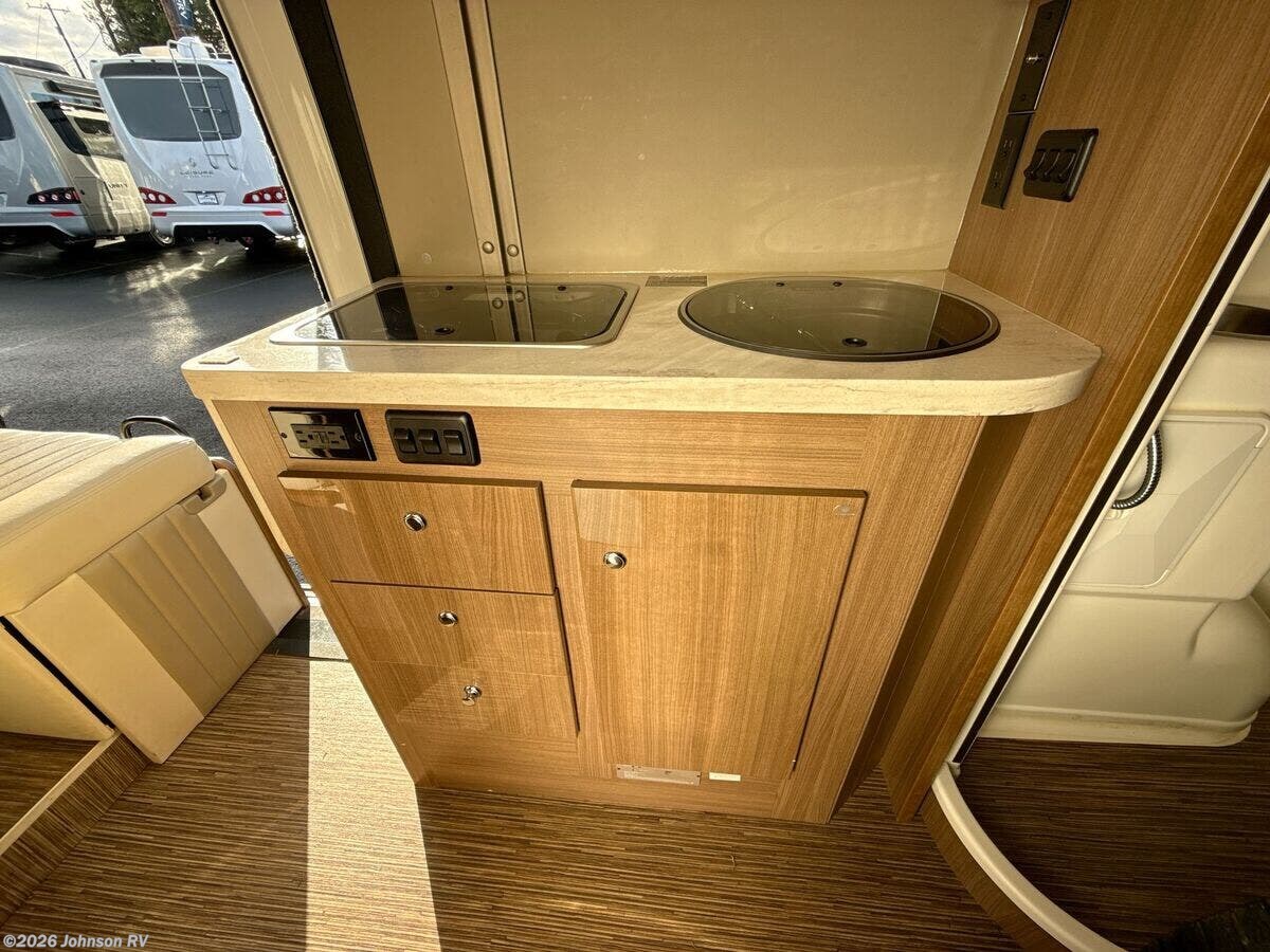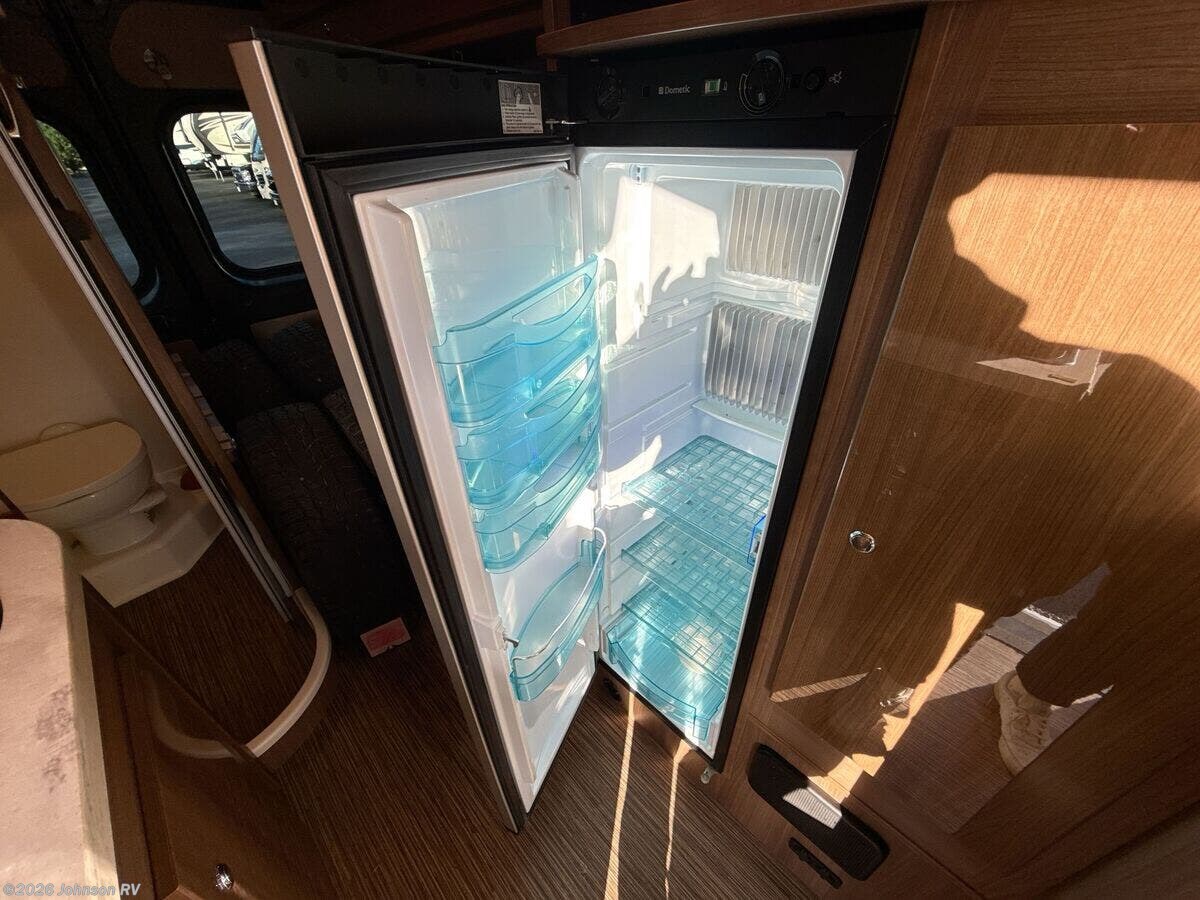The 2017 Winnebago Travato 59G is an outstanding Class B RV built on the dependable Ram ProMaster chassis. This versatile RV is powered by a 3.6L V6 gas engine, delivering 280 horsepower and paired with a 6-speed automatic transmission. Its performance is enhanced with features like a 180-amp alternator, 4-wheel ABS brakes, and stylized aluminum wheels. For cab comfort and safety, you will find: - Power door locks with remote - Power windows and side mirrors with defrost - Adjustable seats with slide, swivel, recline, and lumbar adjustments - Front airbags, side curtain, and side seat bolster airbags - Radio with GPS navigation and rearview monitor - Sirius XM, Bluetooth, and USB connectivity The living space in the Travato is designed for convenience and relaxation: - Power patio awning with LED lighting - LED ceiling lighting - MCD blackout roller shades for privacy - Soft vinyl ceiling and tinted coach windows Dining features ensure you have what you need for meal preparation: - Bench and table with leaf (59G trim) - Corian countertops and a stainless-steel sink with a glass cover - Two-burner cooktop with glass cover and heat shield - 12v/110v/LP refrigerator with removable freezer for model 59G - Microwave with touch controls For entertainment and connectivity, the Travato is well-equipped: - 24-inch HDTV with amplified digital TV antenna - AM/FM/CD/DVD player with Bluetooth and remote - Outside TV jack and outdoor speakers for external entertainment options Sleeping and bathroom amenities are designed to keep you comfortable: - Deluxe FROLI sleep system with a double bed and storage access - Full bathroom with a vanity sink, shower surround, and flexible shower head - Foot pedal toilet and power roof vent Mechanical features strengthen the Travato's utility and efficiency: - Two deep-cycle Group 31 AGM batteries with battery disconnect switch - 2.8 Cummins Onan gas generator - Energy management system with a 45-amp converter charger - 13.5 HE Roof AC unit and Truma Combi Eco Plus heat system - City water hookup and holding tank flush system - Outside wash station for convenience This RV is built to support both short getaways and prolonged adventures, offering a remarkable blend of functionality and comfort. ???