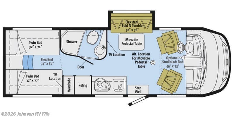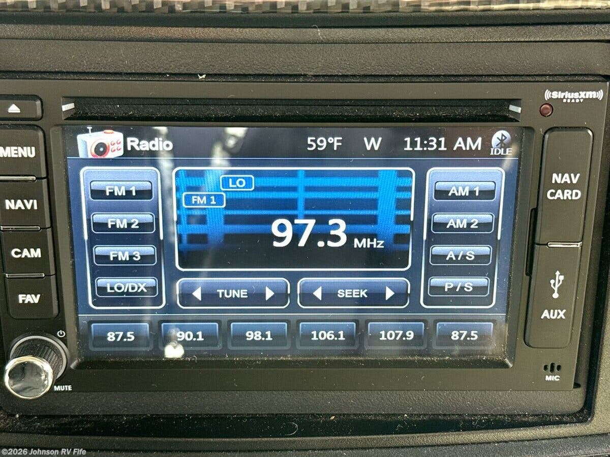Features Include: 220-Amp Alternator, Stepwell Light, Soft Vinyl Ceiling, iPod, Handheld Remote, USB, Bluetooth, Rand McNally RV GPS, 12v Powerpoints, Awning LED Lighting, Stepwell Light, LED Ceiling Lighting, Laminate Countertops, Stainless Steel Sink, 2-Burner Range Top, Dual USB Charger, Cable TV Hookup, HDTV Sleeping, Double Bed (25P), Foam Mattress, Pillow Shams, 24-inch HDTV, Towel Bar or Rings, Flexible Showerhead, Skylight, 30-Amp Service Cord, 1000w Inverter, 14.8 AC Heat Pump, On Demand Water Pump, Drainage Valves, Aluminum Framed, High Gloss Sidewalls, Fiberglass Roof, Fog Lights, Rear Mudflaps