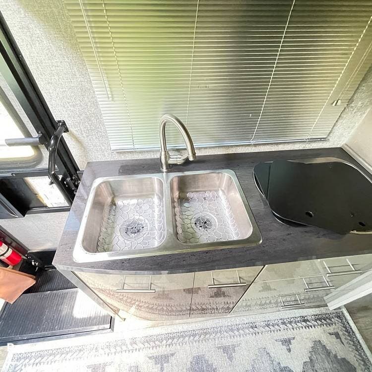 The exterior has full body paint for a triking appearance, and when it comes to off-grid performance, the Onan diesel generator provides excellent power.