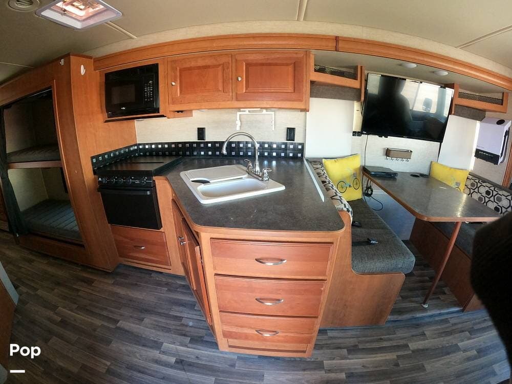This model has a bunkhouse layout, perfect for families. The bunks are in the middle of the motorhome, and each one has its own small TV so everyone can relax their way, with included cell and Wi-Fi Boosters.