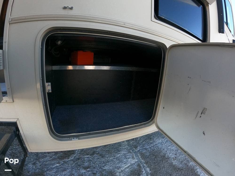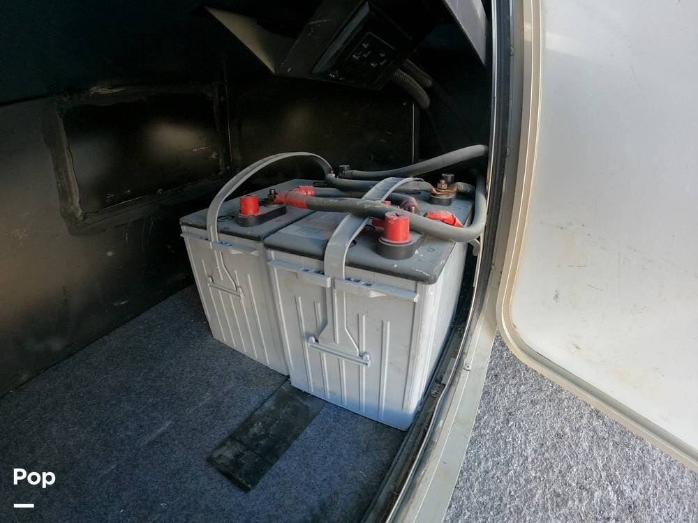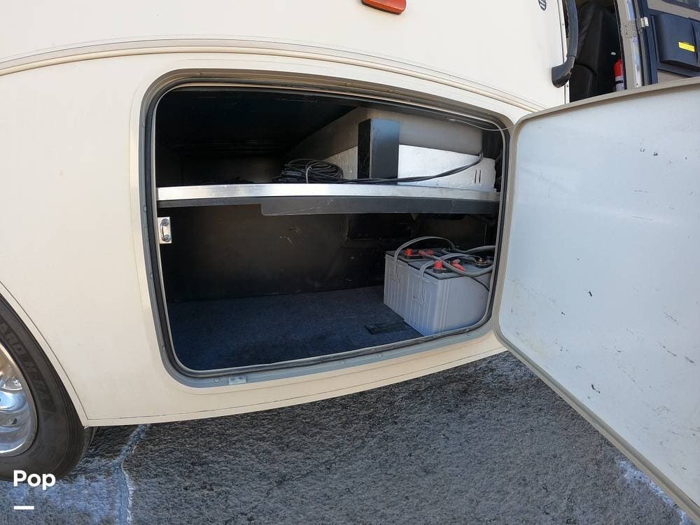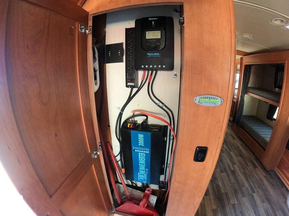 Outside, there's a large awning for shade and outdoor hangouts. Solar Panels and an inverter, with four coach batteries included, are also included. Storage compartments underneath offer lots of space for gear, chairs, and other stuff.