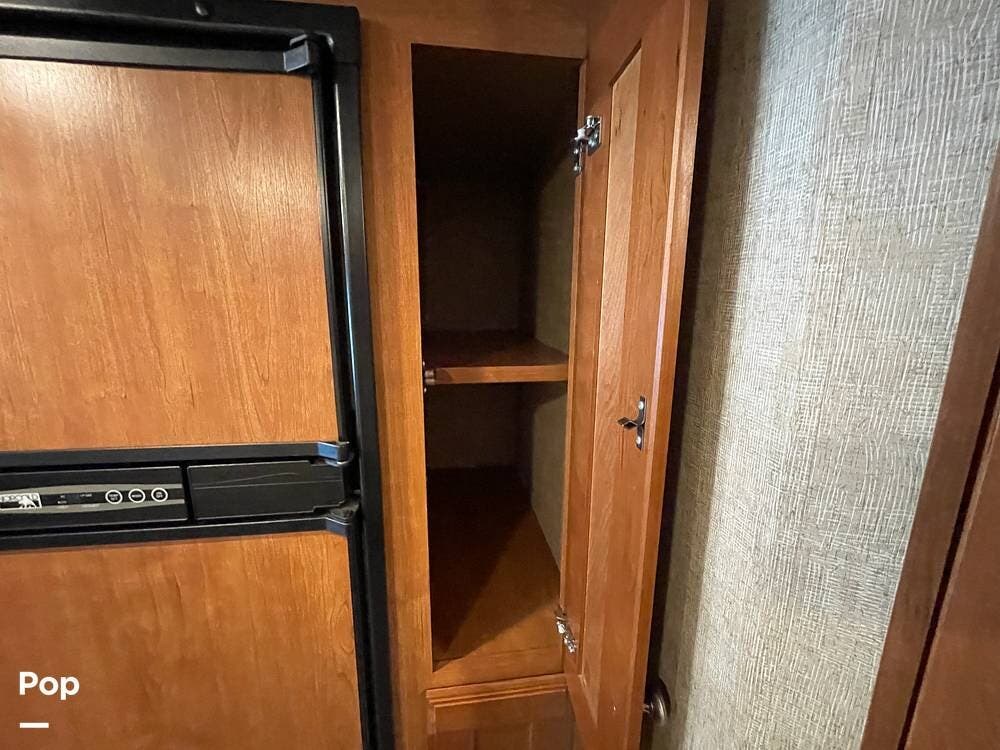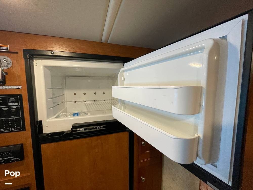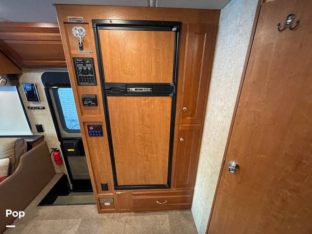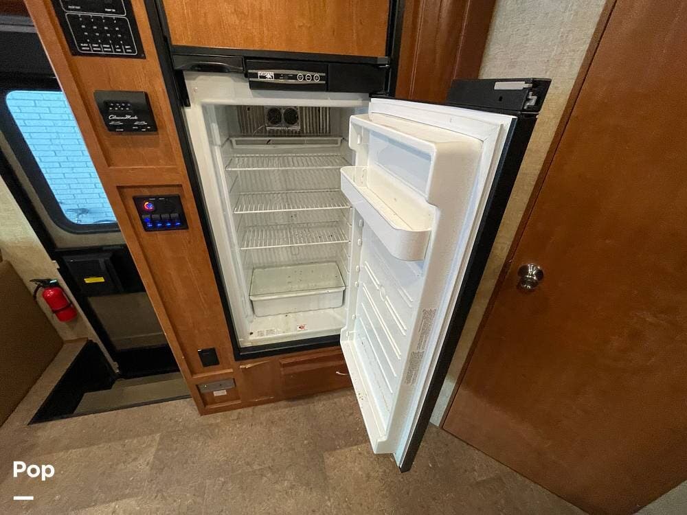 A refrigerator/freezer and a pantry are located on the passenger side, just inside the entry door.