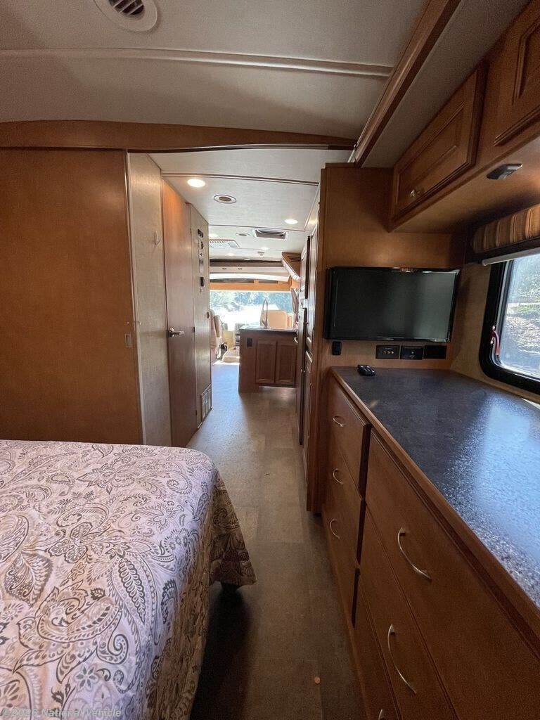 This Winnebago Vista LX class A gas coach 27N features triple slide outs for added interior space, with the passenger side being almost a complete wall slide out.