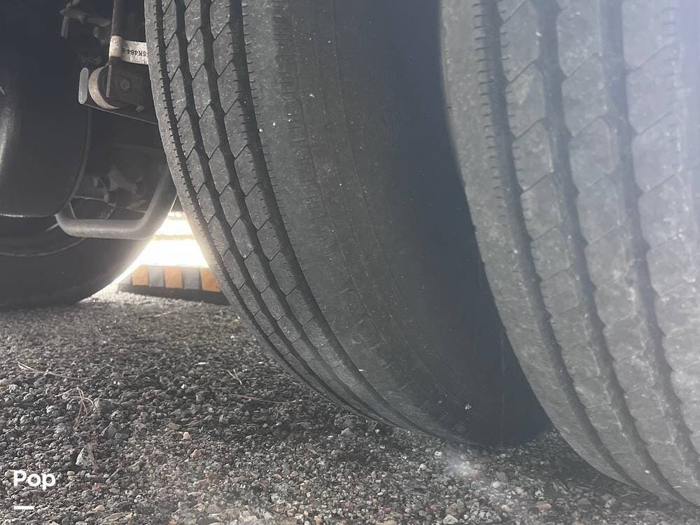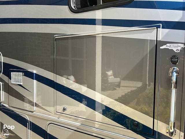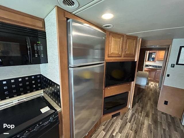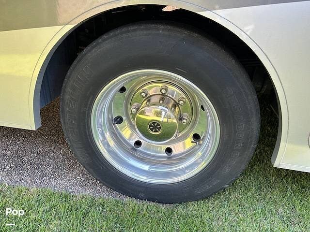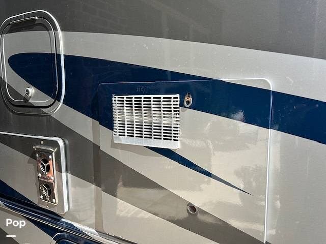 Step inside and feel at home, no matter where you are. This Vista LX 35F boasts a spacious, elegantly designed interior with everything you need for a first-class experience on the road. Its open floor plan features premium leather seating, a cozy fireplace, and a master bedroom with a queen-size bed that promises restful nights after a day of adventure. The gourmet kitchen with solid-surface countertops and stainless-steel appliances makes meal prep a breeze. Plus, with 1.5 bathrooms, there's no need to compromise on convenience.