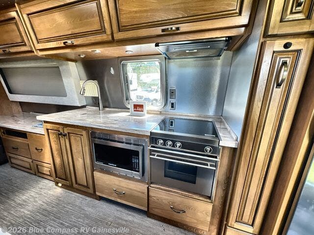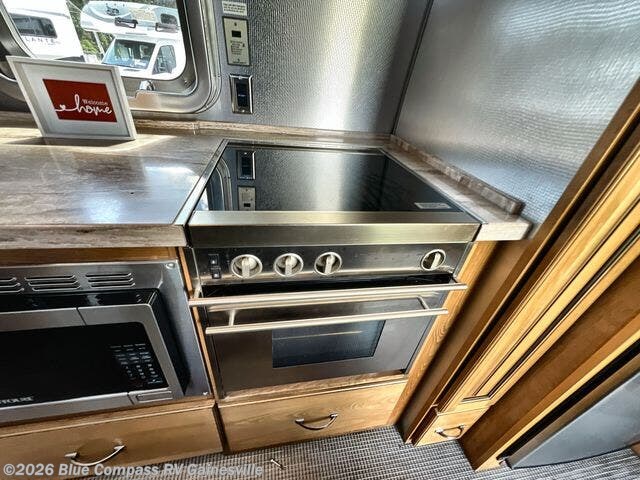 No matter how long your journey may last, you will want an Airstream Classic travel trailer. You will enjoy plenty of features such as a Multiplex control panel that with the touch of a button you can control lighting and technology. While you are away from home you can enjoy a variety of entertainment features such as a Polk stereo with XM/AM/FM Satellite radio and Bluetooth, a 65" or 32" living room TV depending on the model, plus a Blu-Ray DVD player. Each kitchen has enough features throughout to make you feel like you are still at home from the three burner gas cook top to the Corian countertops you will enjoy all of the space!