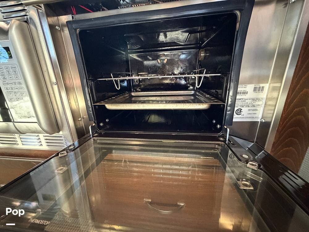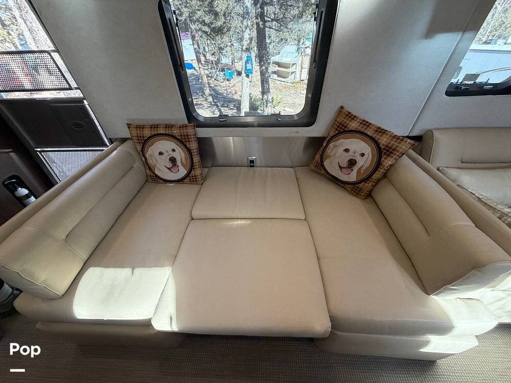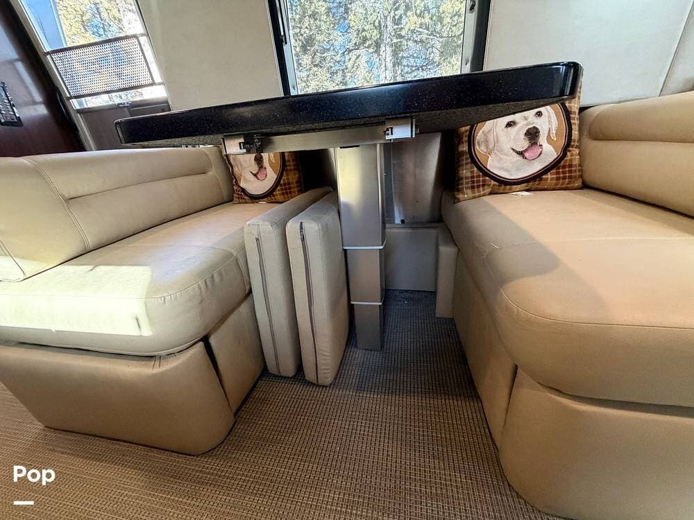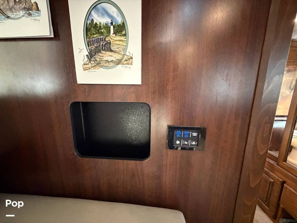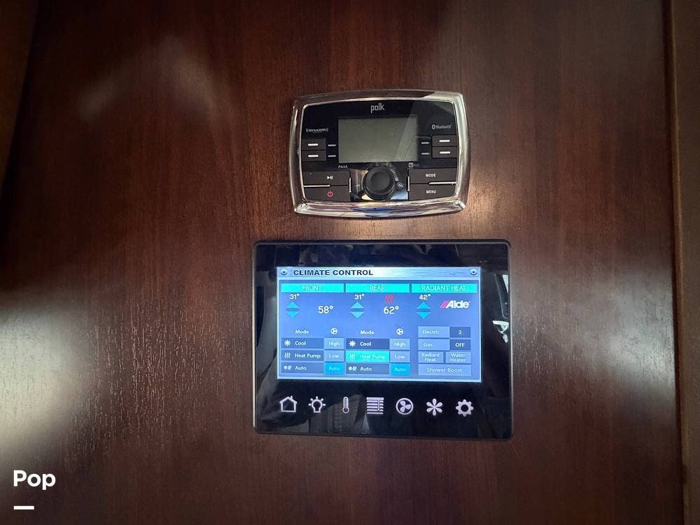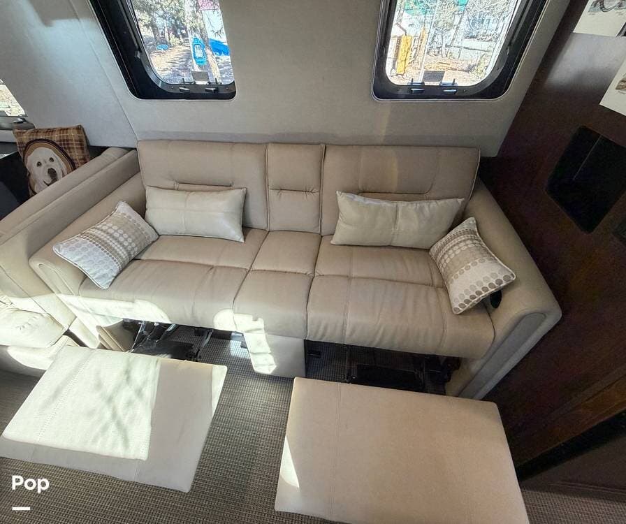 Inside the 33FBQ, the interior is high-quality from top to bottom, featuring premium handcrafted hardwood cabinetry, Ultraleather furniture, and high-tech control systems.