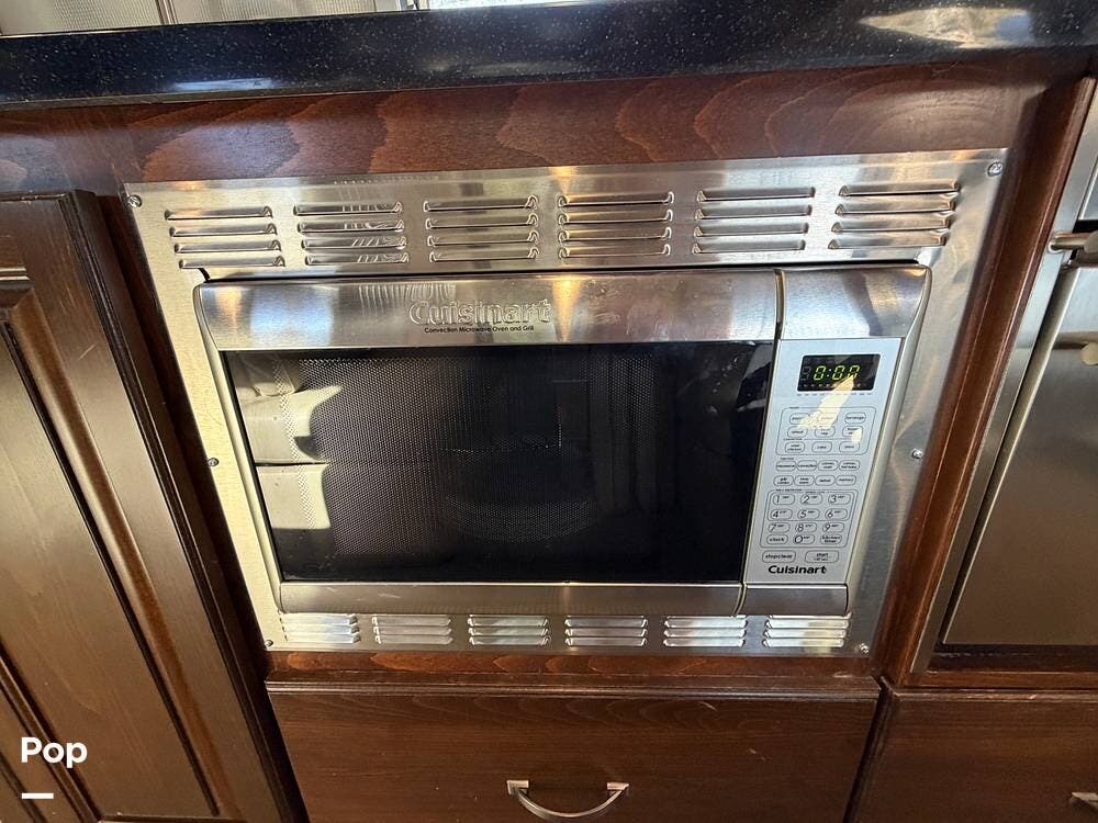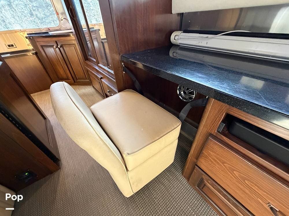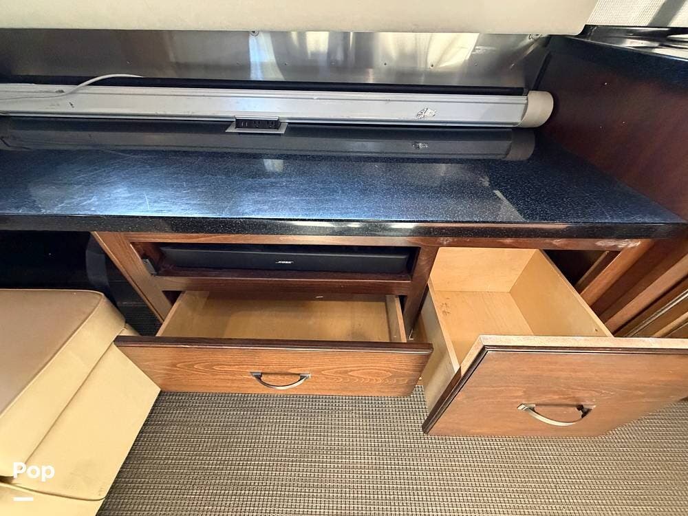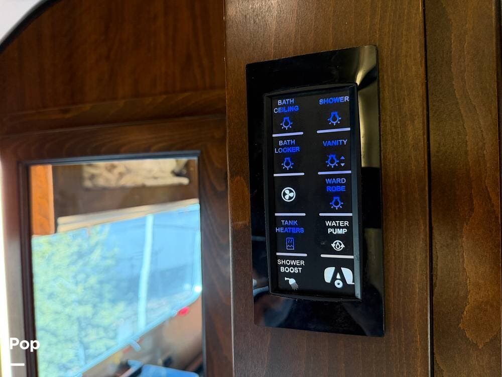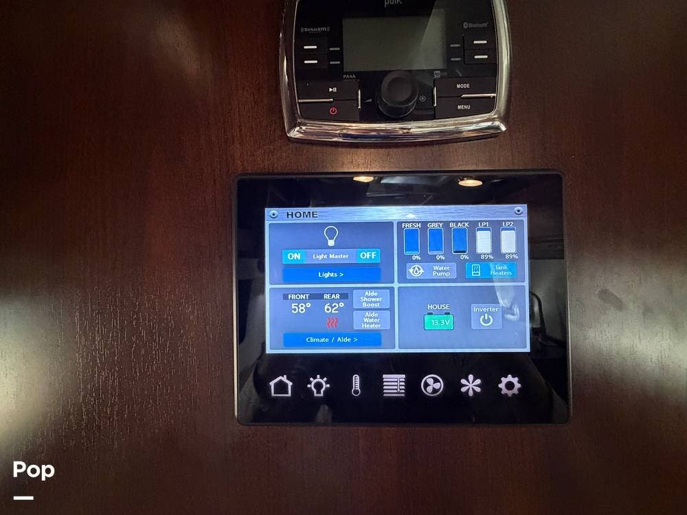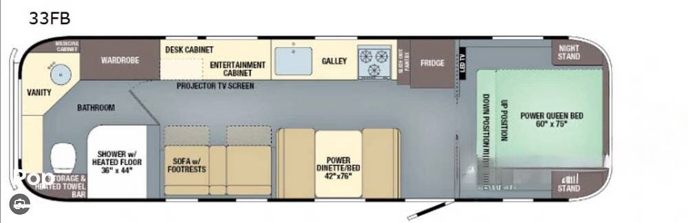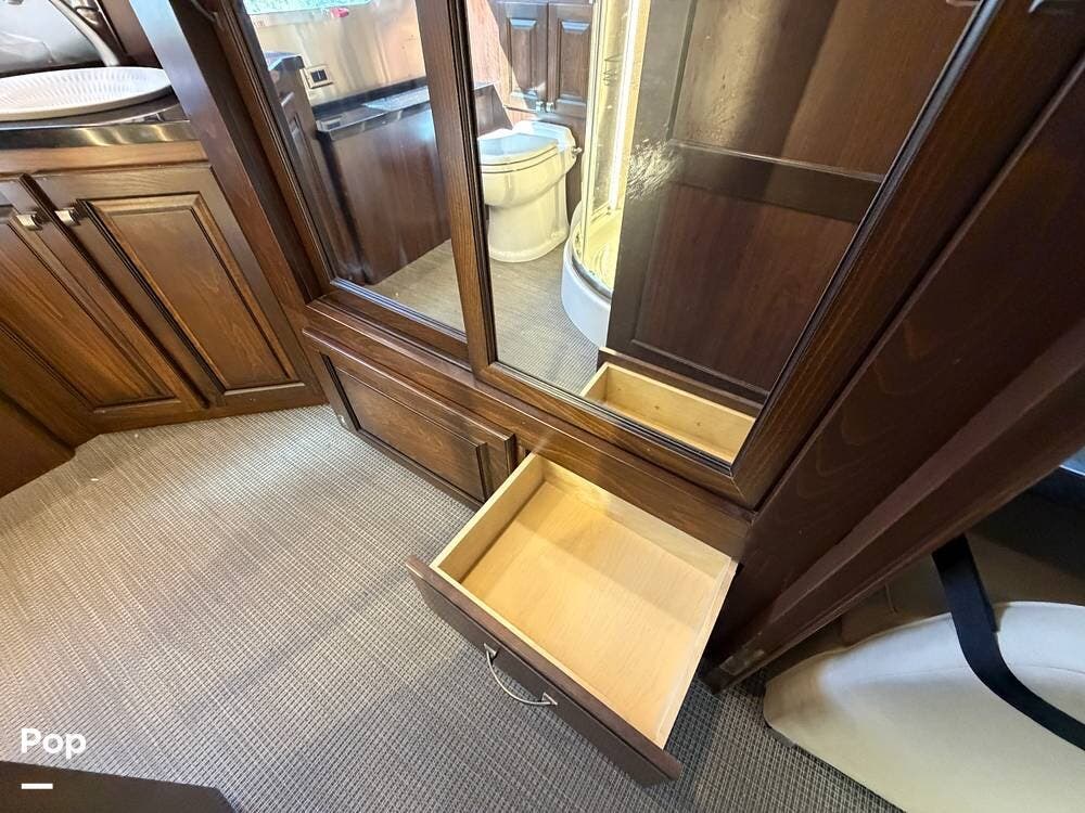 Inside the 33FBQ, the interior is high-quality from top to bottom, featuring premium handcrafted hardwood cabinetry, Ultraleather furniture, and high-tech control systems.