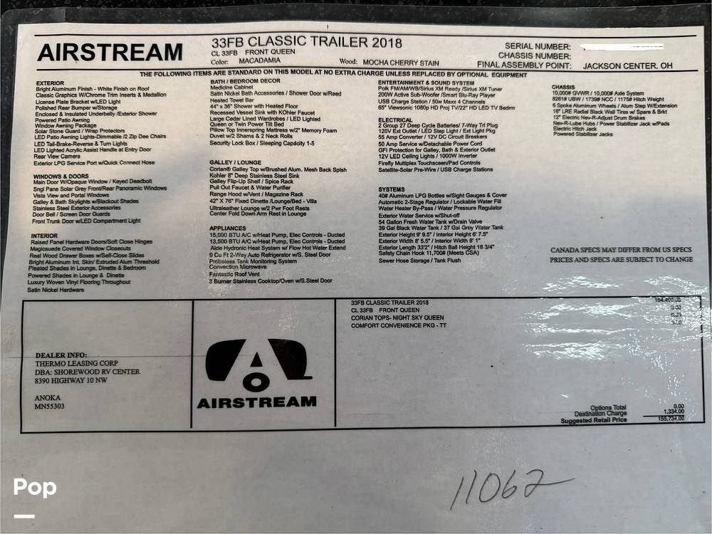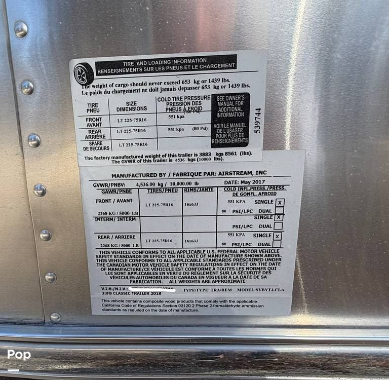 Request More Info on this 2018 Airstream Classic 33FBQ Offered for sale by Pop RVs