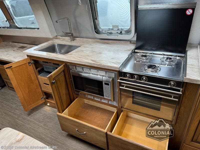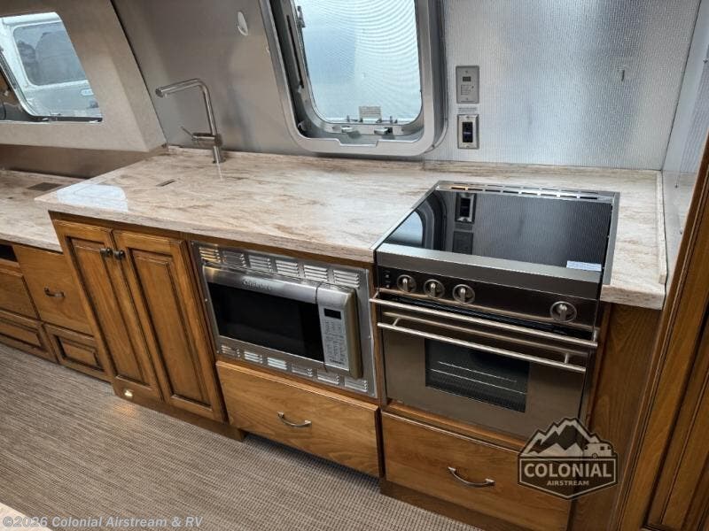 No matter how long your journey may last, you will want an Airstream Classic travel trailer. You will enjoy plenty of features such as a Multiplex control panel that with the touch of a button you can control lighting and technology. While you are away from home you can enjoy a variety of entertainment features such as a Polk stereo with XM/AM/FM Satellite radio and Bluetooth, a 65" or 32" living room TV depending on the model, plus a Blu-Ray DVD player. Each kitchen has enough features throughout to make you feel like you are still at home from the three burner gas cook top to the Corian countertops you will enjoy all of the space!