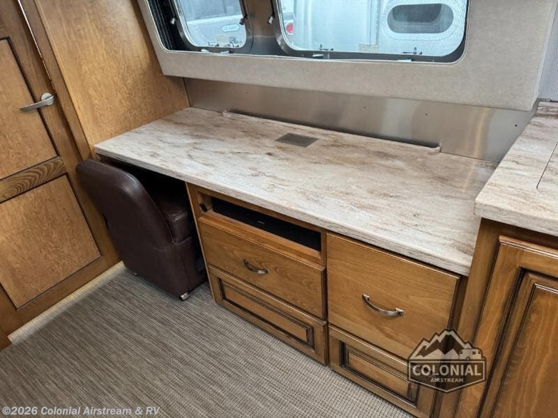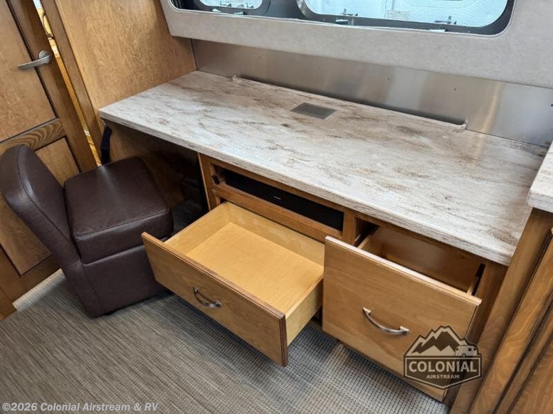 If you enjoy traveling with the comforts of home, then take a step inside this Airstream RV Classic 33FB Twin travel trailer where you will find a front bedroom with two 36" x 80" twin beds, plus plenty of other conveniences. If you have a little work to do then the desk cabinet will be handy. The rear bathroom is spacious and has a large wardrobe plus a 36" x 44" shower with a heated floor.