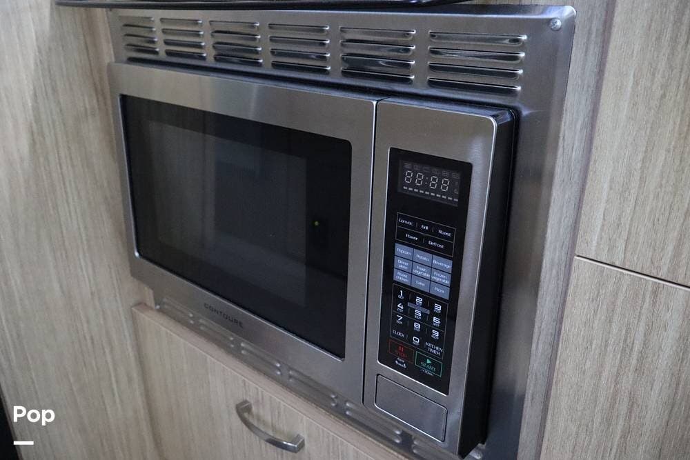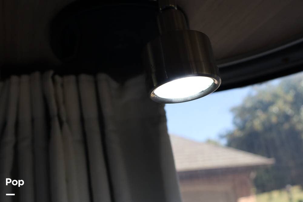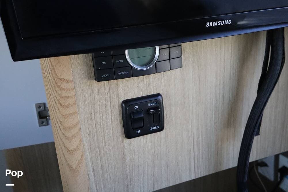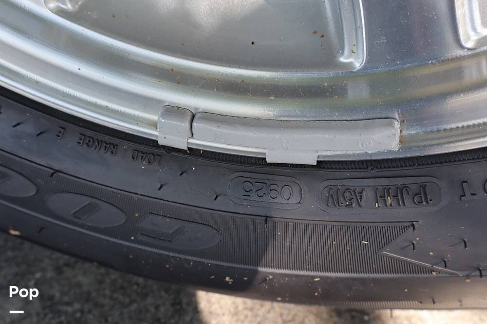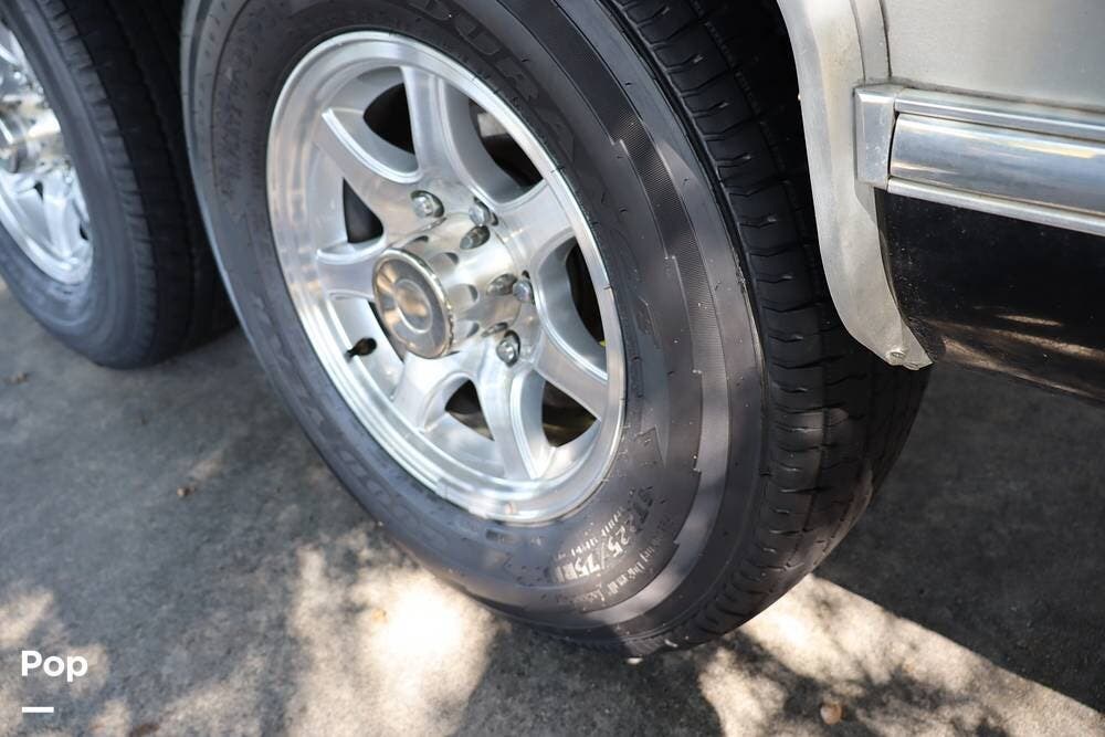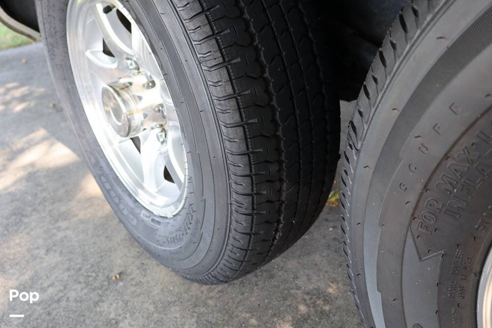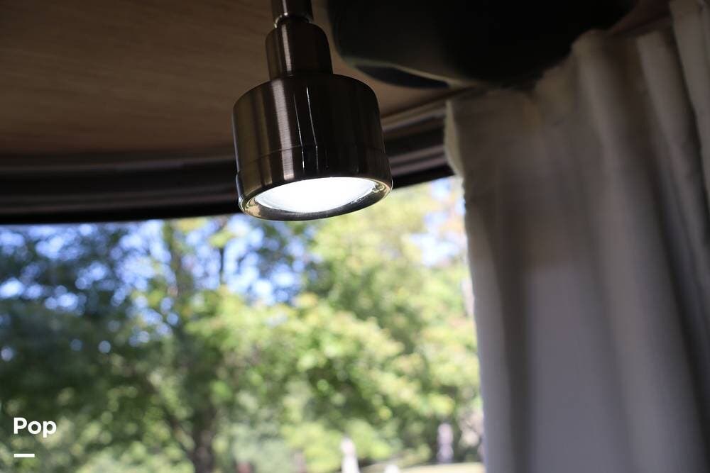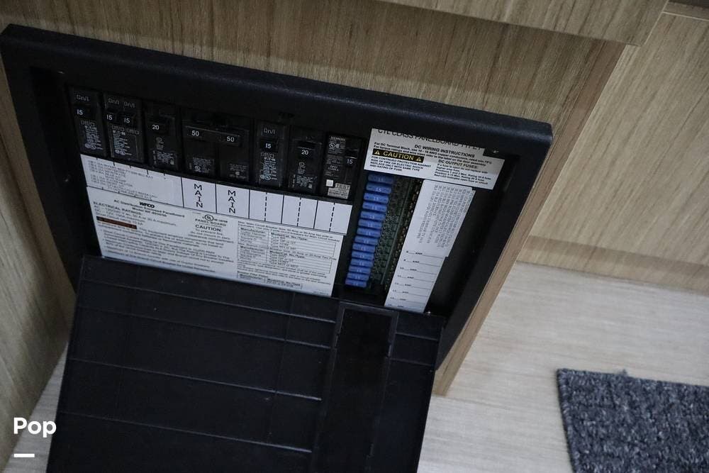 Includes with a 50 AMP service, (2) 30 lb. LP steel tanks, an inverter, and a manual patio awning. It has a powered tongue hitch jack and a backup camera.