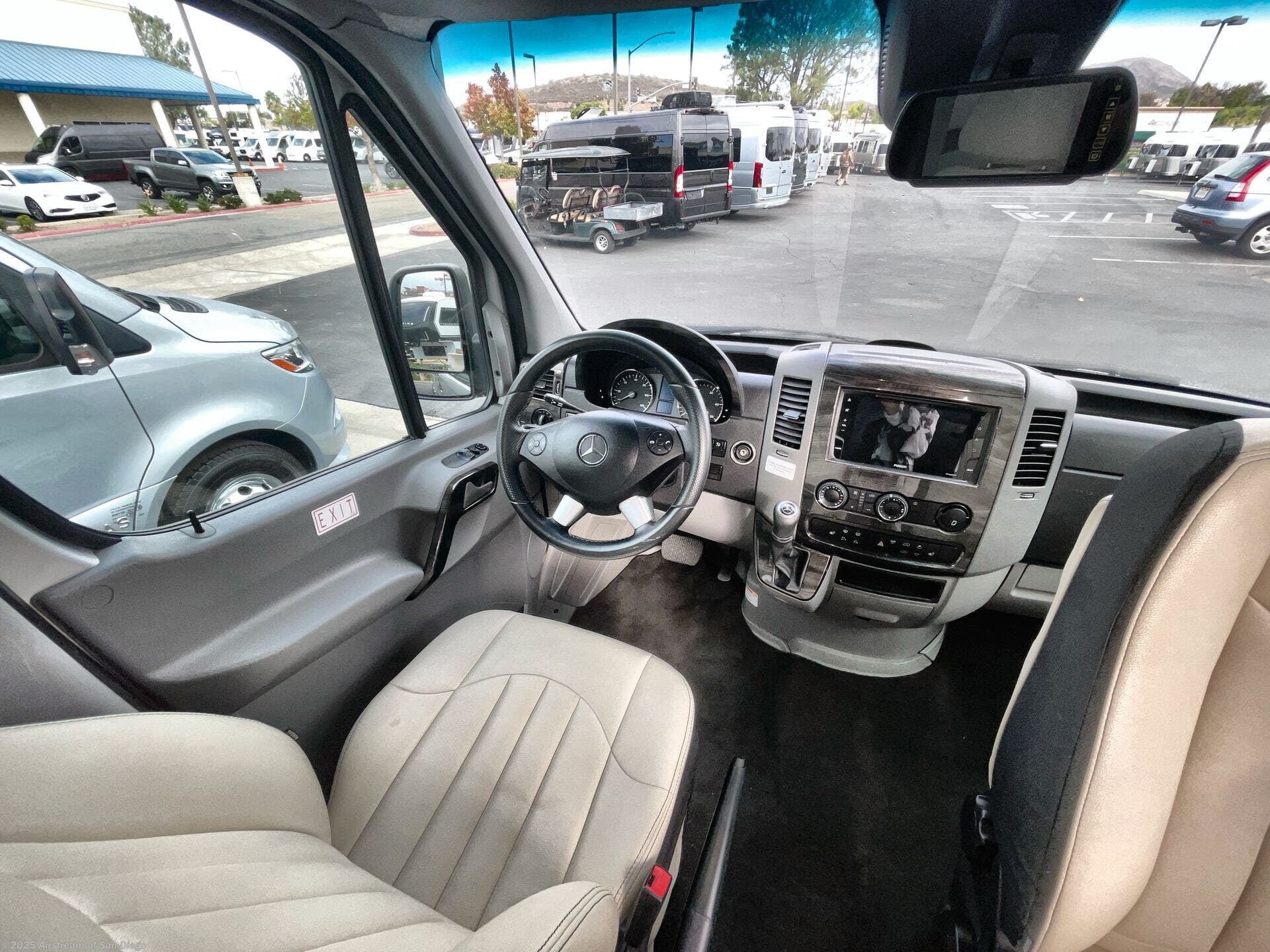 Step inside and find a convenient conversation area with the driver and passenger seats swiveled around and two additional lounge chairs, all with seat belts for safety while traveling. There is a removable table where you can enjoy your meal, or morning coffee.