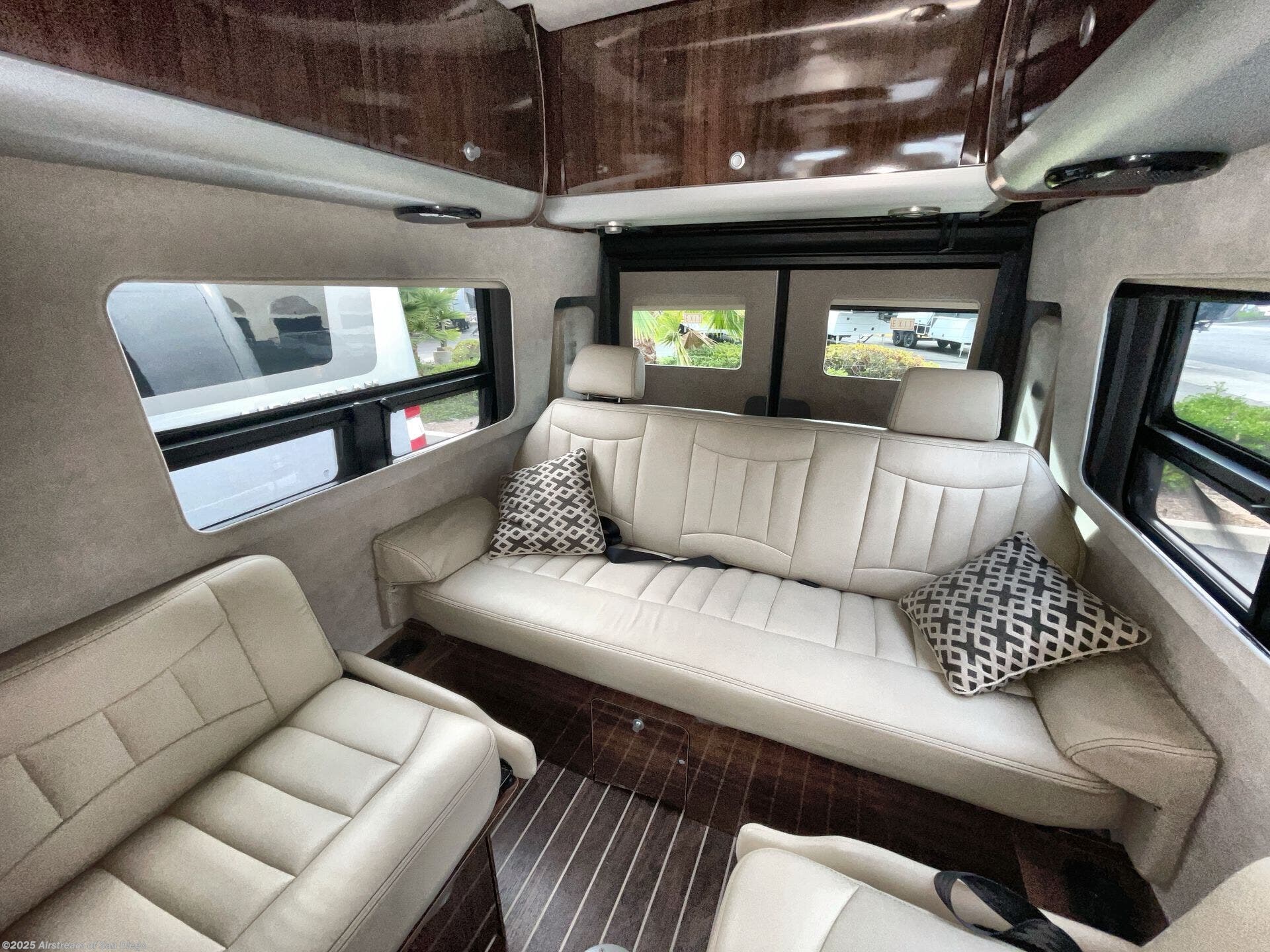 This Interstate Lounge EXT Std. Model Class B diesel coach offers interior seating including seat belts for 9 individuals and sleeping accommodations for two.