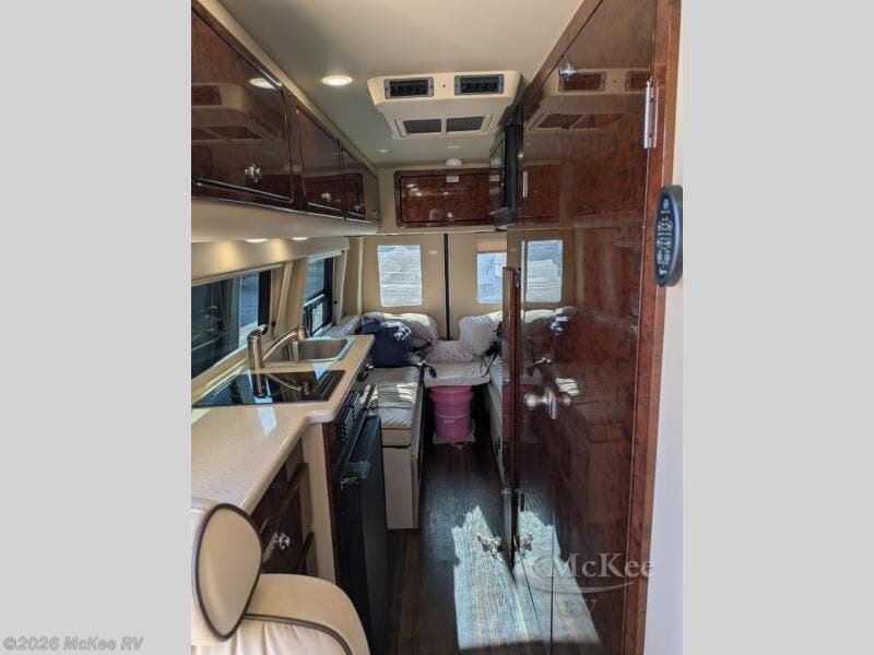 Each American Patriot class B diesel by American Coach offers convenience and comfort. The driver will appreciate the large screen Fusion, CD, DVD, radio and NAV unit with complete refinish of lower dash and door accents as well as the rear backup camera system when parking the unit. There is a 100 watt roof top solar charging system, a 2.5 kw LPG generator, a HDMI input, plus satellite TV and Wi-Fi prep to keep everything running smoothly. Choose your favorite American Patriot class B diesel, and start making plans on the open road!