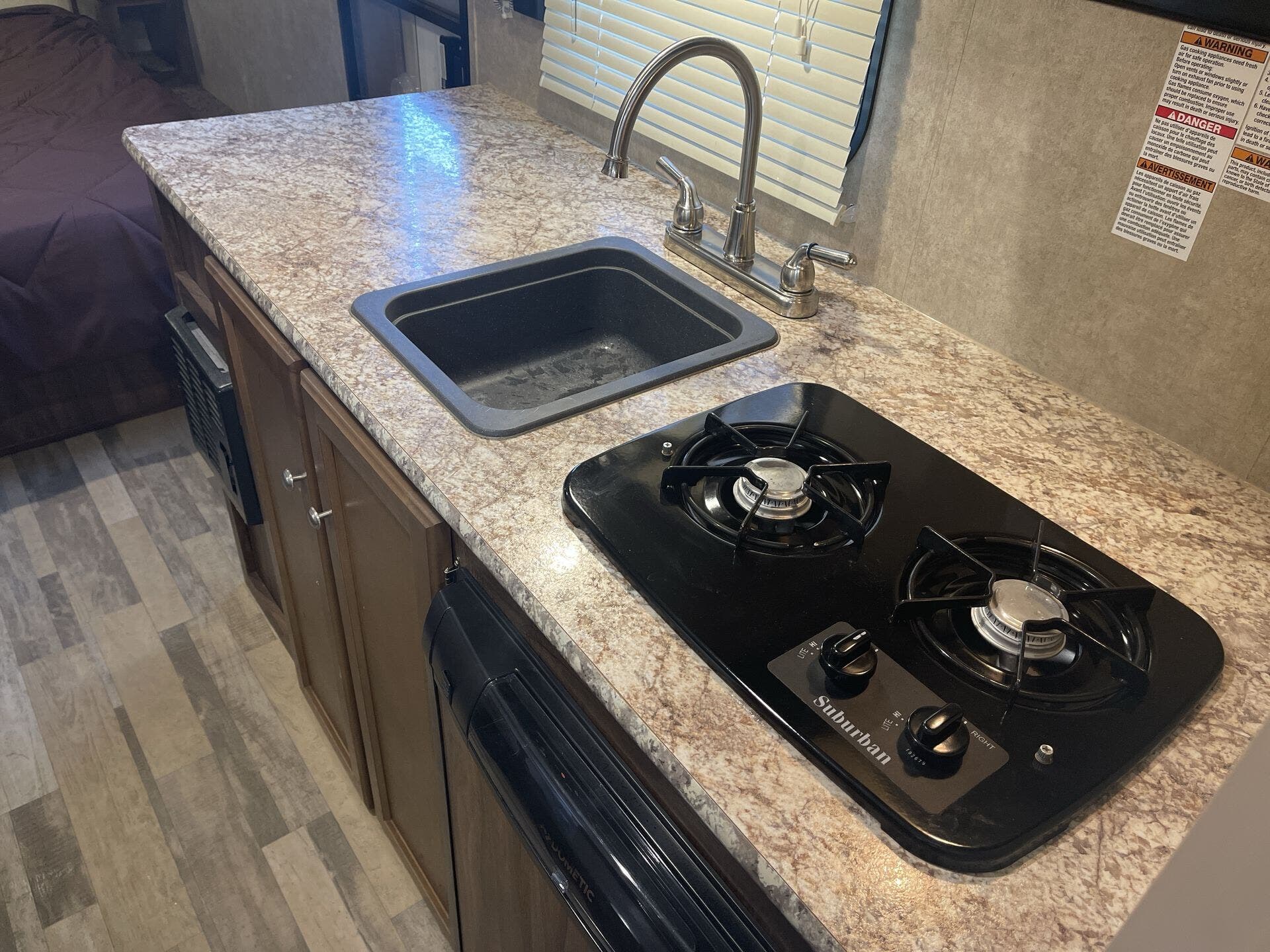 - Kitchen essentials: Microwave, Refrigerator, Stove, Stove Top Burner, and Water Heater