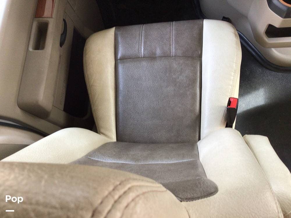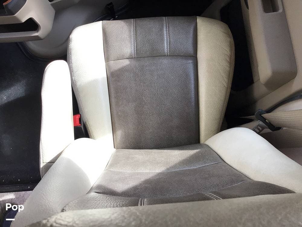 The cab features a touchscreen dash radio with a backup monitor, side-view cameras, and swiveling captain's chairs for improved visibility and comfort on the road.