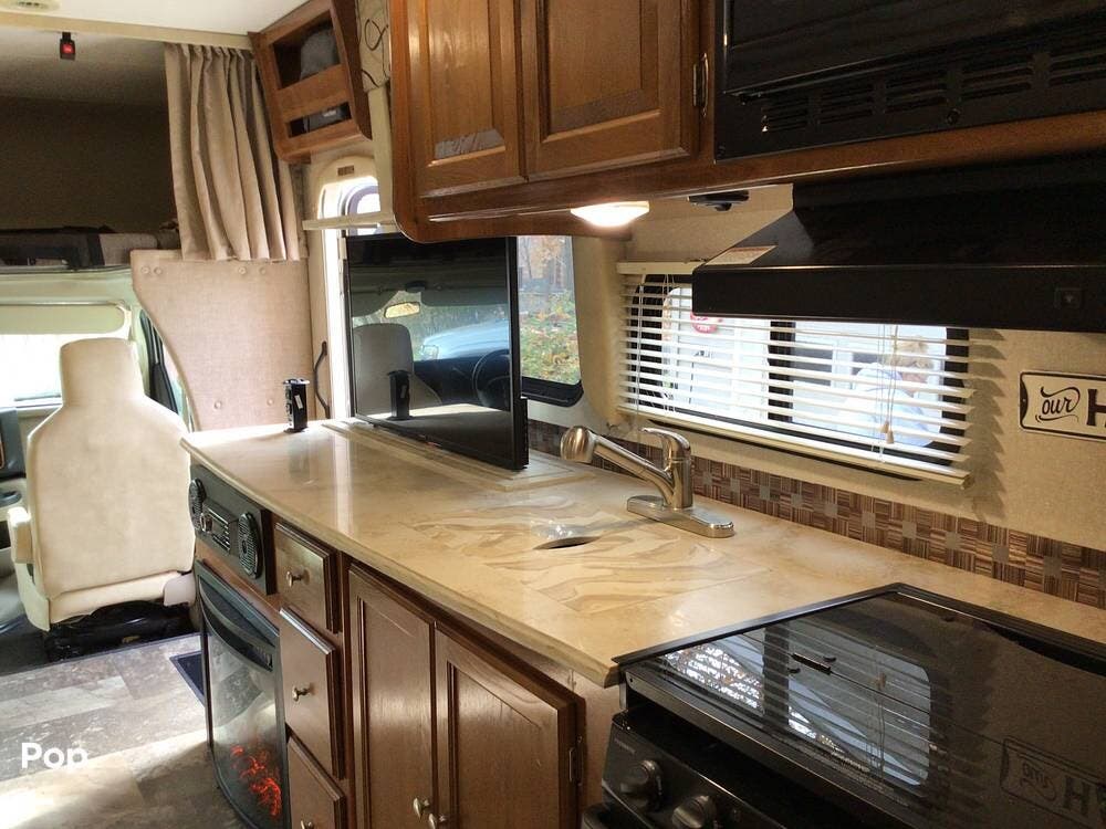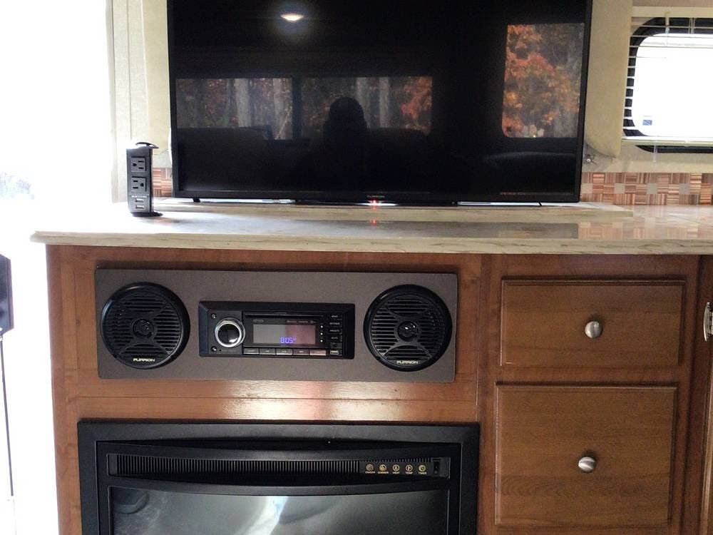 Well-maintained Class C with outdoor entertainment center, electric fireplace, and newer tires!